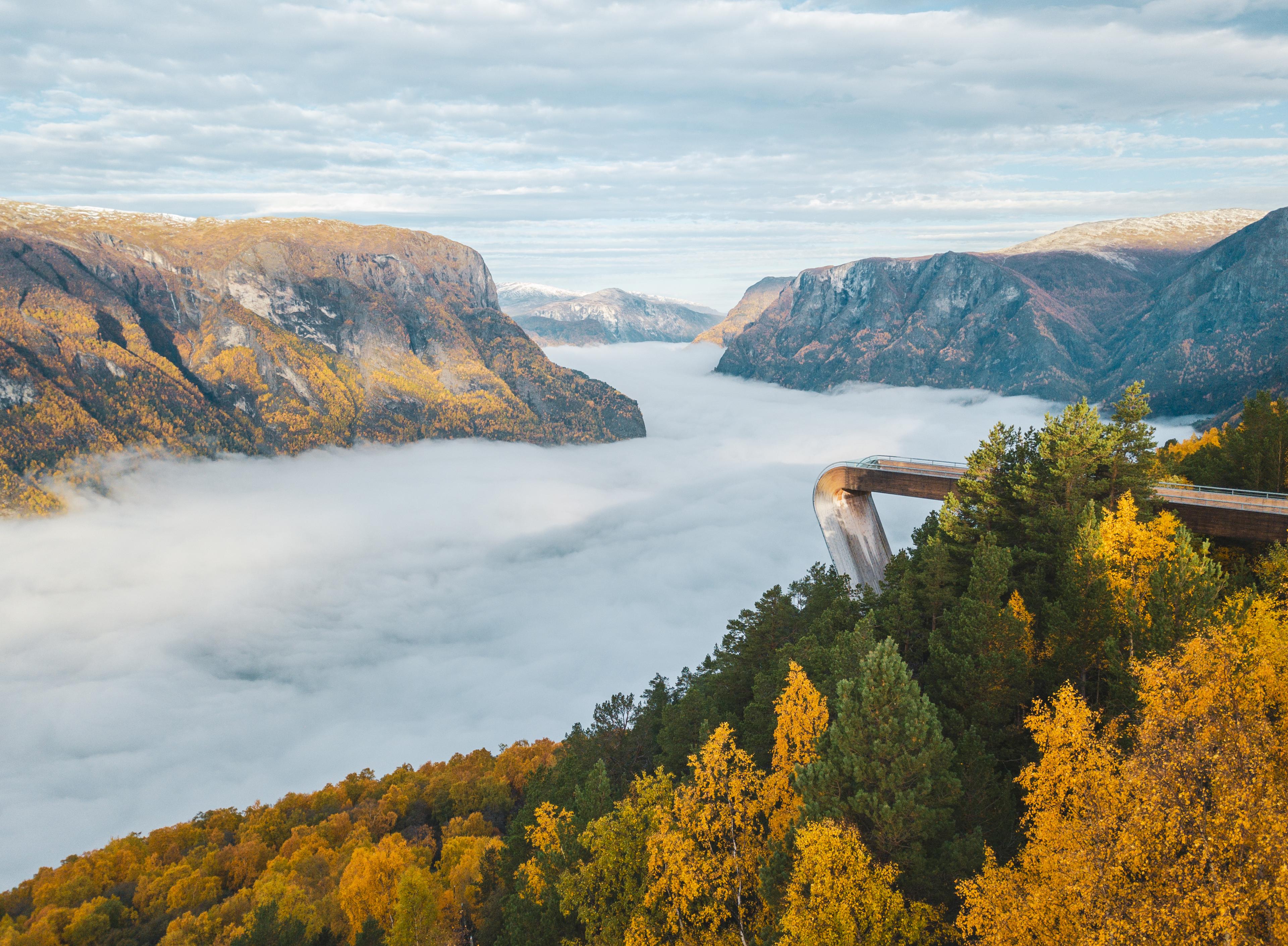 Autumn transforms the landscape into a dramatic spectacle. As the rain falls, water cascades down the mountainsides and the waterfalls grow into powerful torrents roaring through the valleys. The dramatic light and vivid autumn colours make the experience even more intense – wild, beautiful, and truly Norwegian.