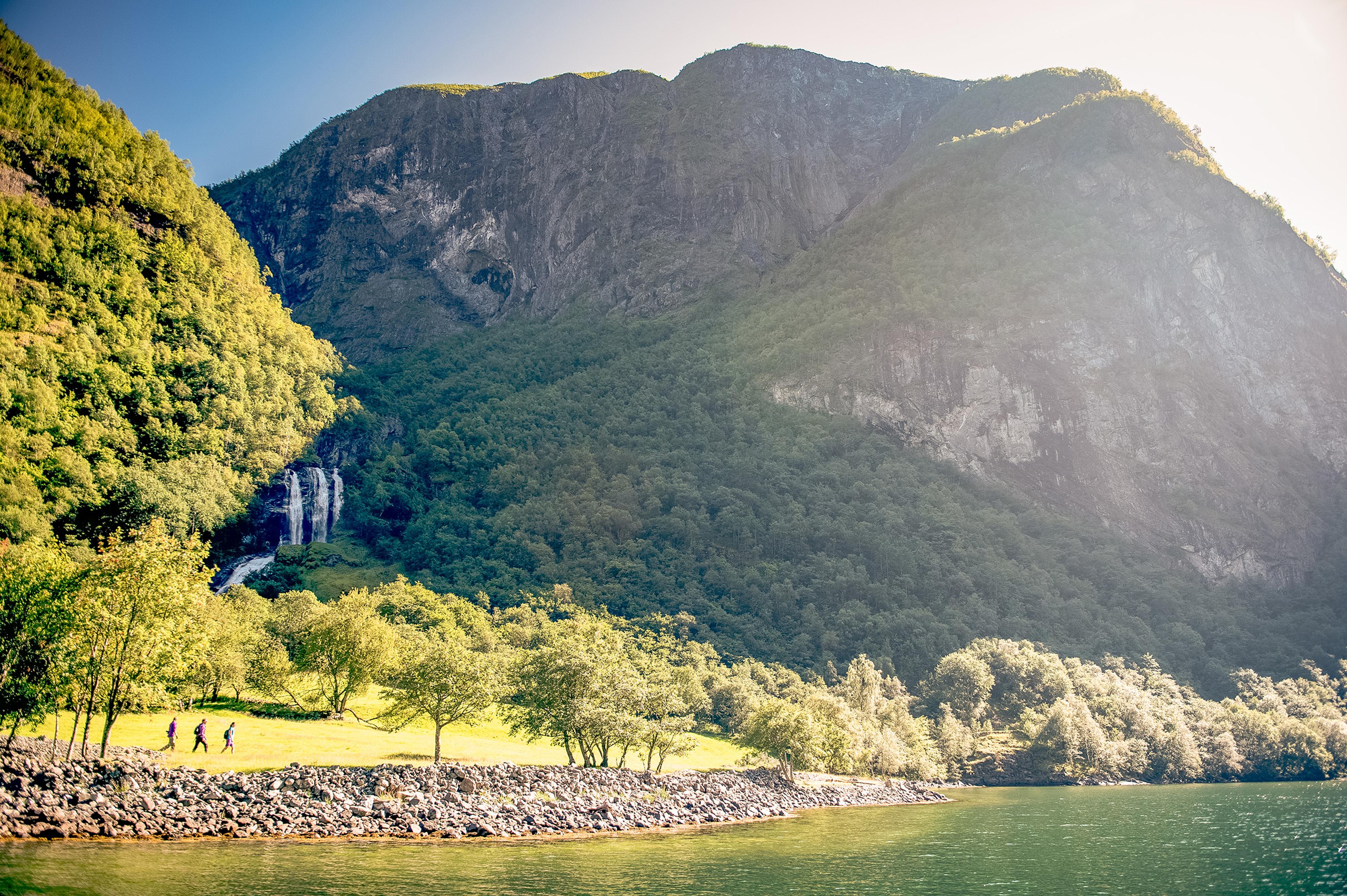 From Undredal, one can take a nice and family-friendly path right along the fjord's edge to Stokko. Stokko was once a farm, but is now just a large and beautiful grassy area perfect for a break, playing, and perhaps a dip in the fjord? The hike is 2 km one way and is marked from Undredal.