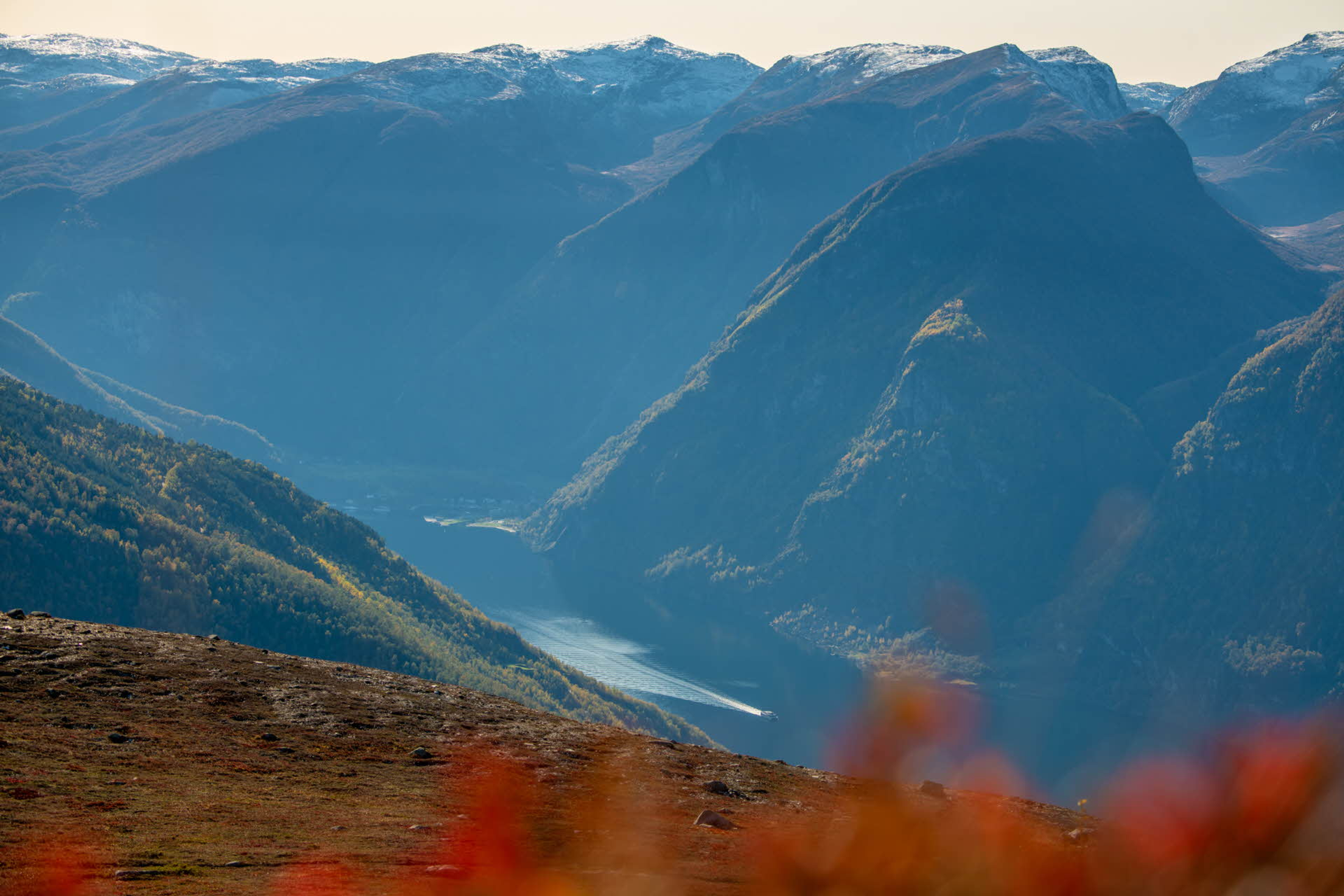 We recommend staying at either Fretheim Hotel in Flåm or Hotel Aurlandsfjord in Aurland. Start your day with a tasty breakfast before boarding the bus that runs from Flåm via Aurland and Stegastein to the starting point of the hike. The walk up takes up 1–2 hours and gives you time to enjoy the stunning panorama of Aurlandsfjord. The bus will return from the starting point.