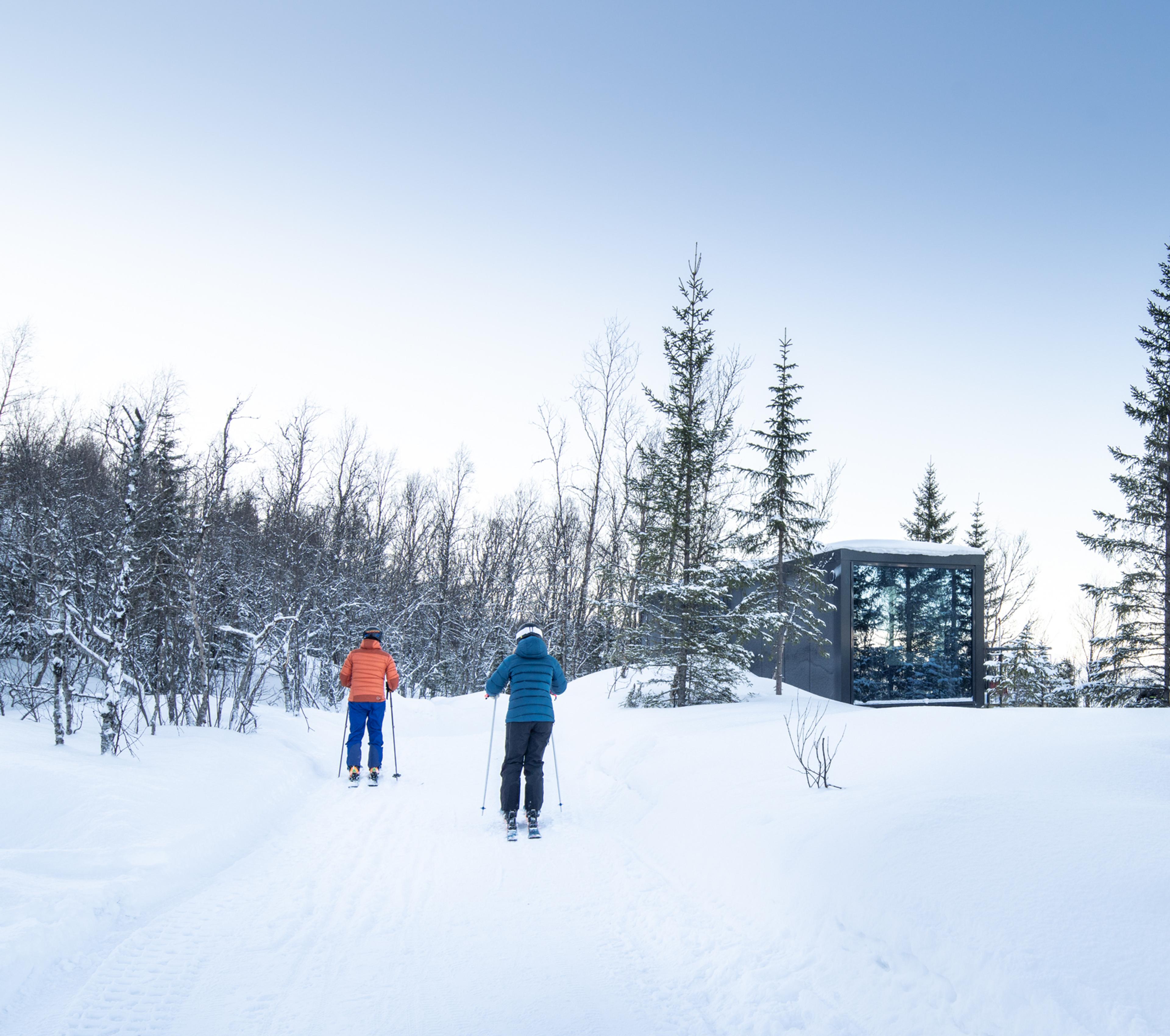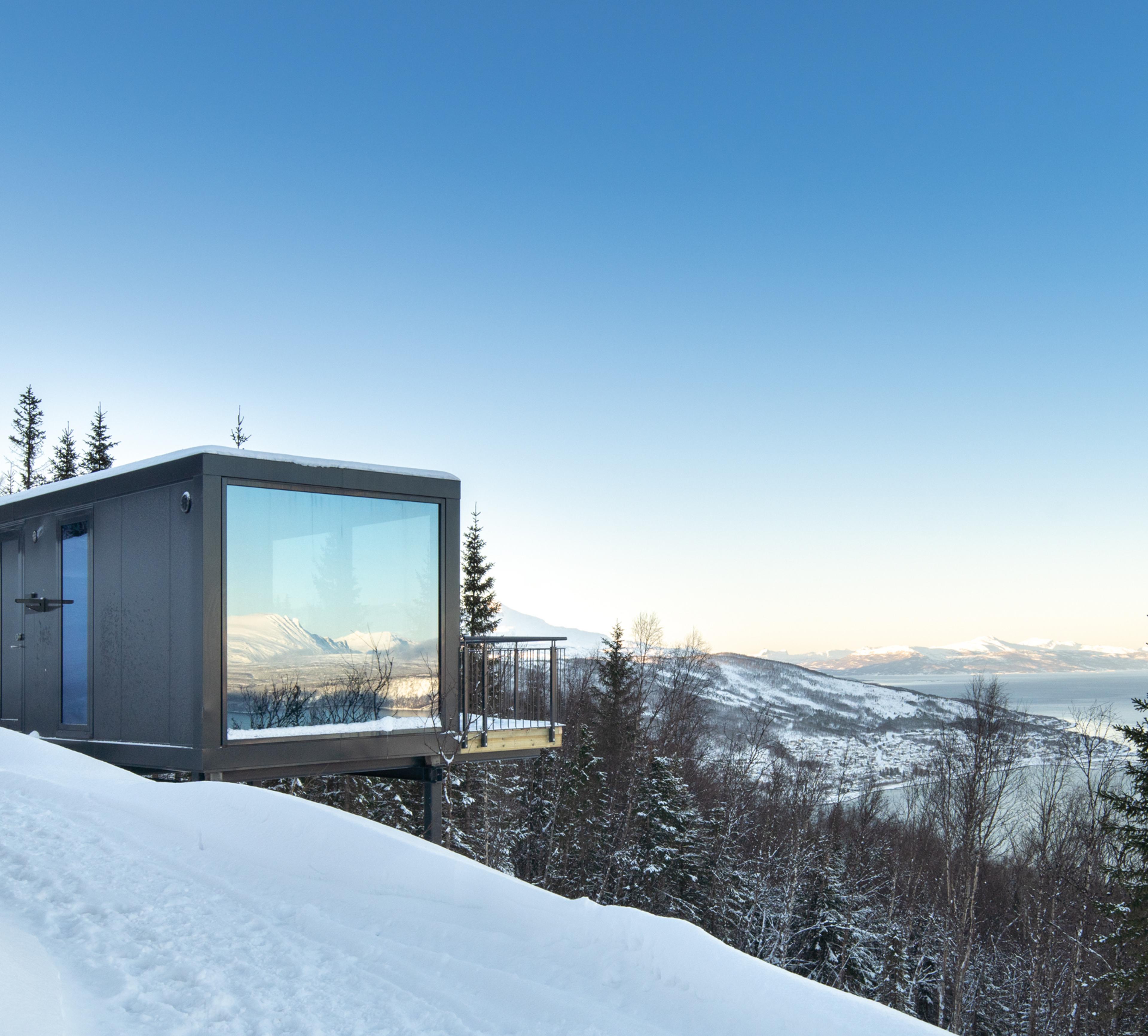 The cabins are recyclable, buildt to last and are placed on poles to minimize the footprint in nature. The quality of the cabins is consistent, and the modern architecture blends into nature in a very special way.