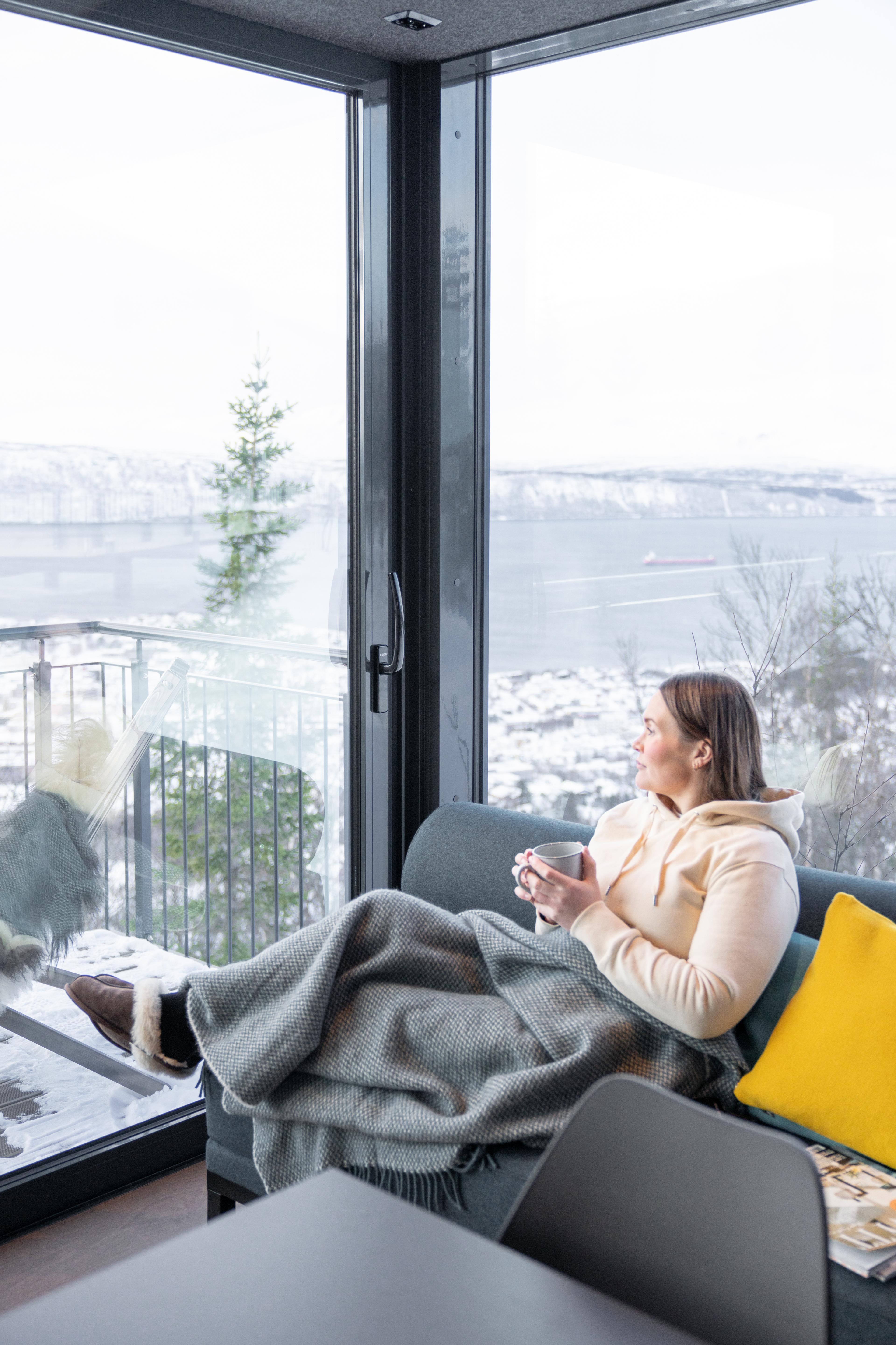 The luxurious cabins have two different sizes and are designed as a small, detached apartments on one level with glass walls on three out of four sides. The high standard cabins give the feeling of staying in a luxury hotel with quality beds and wall to wall skylight window in the bedroom. All the cabins have fantastic views of the sea, the mountains and Narvik city. The Narvik Cabin will function as the base for community and enjoyment with a lounge area, meeting room and simple dining for the camp's guests.