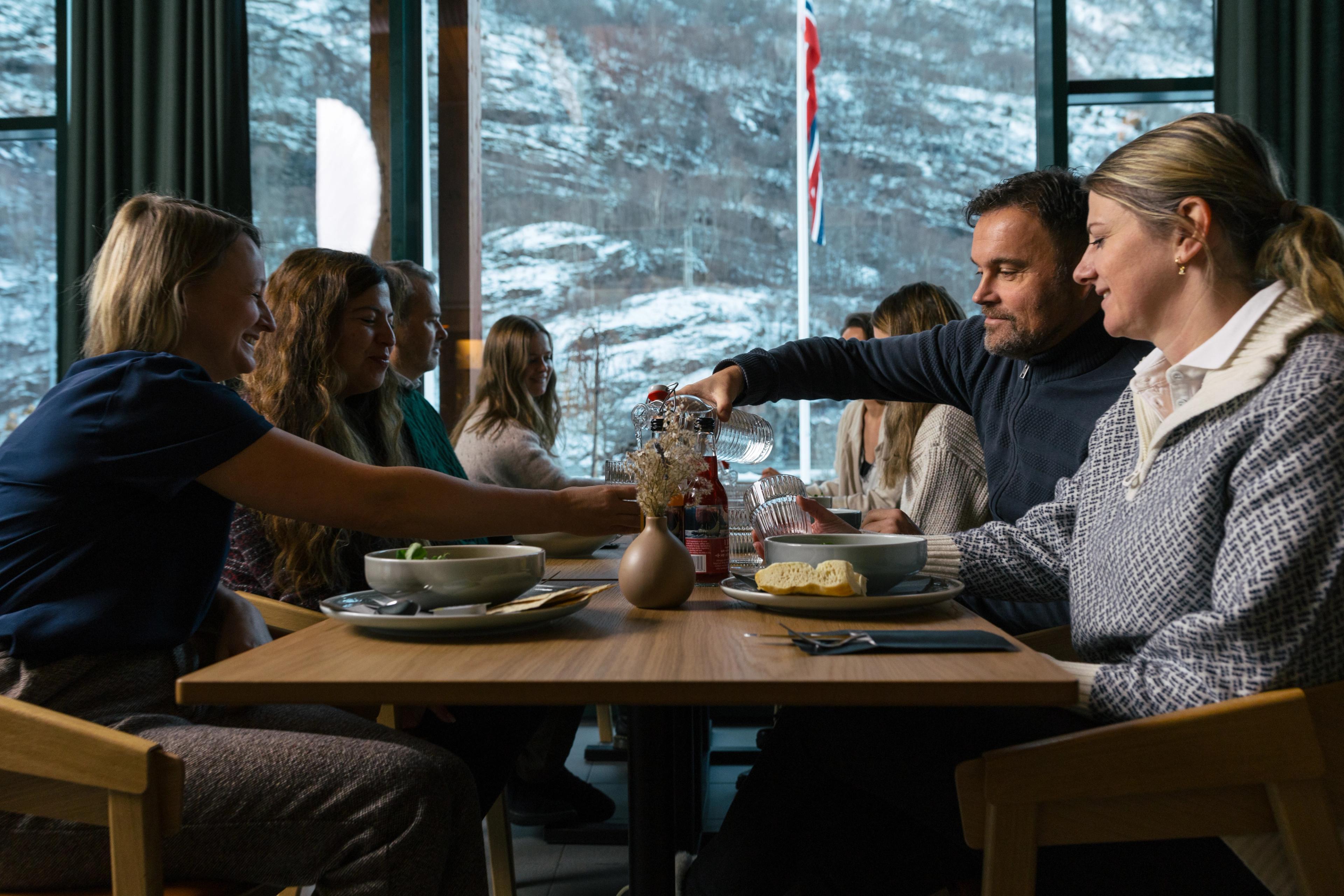 Erleben Sie den Geschmack Norwegens! Unsere kulinarische Szene basiert auf lokal produzierten Zutaten und der Hingabe zu Kultur und Traditionen. Besuchen Sie das Restaurant Arven für ein vollständiges kulinarisches Erlebnis oder machen Sie einen Zwischenstopp in der Bäckerei Flåm und probieren Sie die verführerischen Leckereien der Handwerker. Lehnen Sie sich in einem der bequemen Sessel in der Lobby-Bar des Fretheim Hotels zurück und entspannen Sie sich bei Ihrem Lieblingsgetränk.