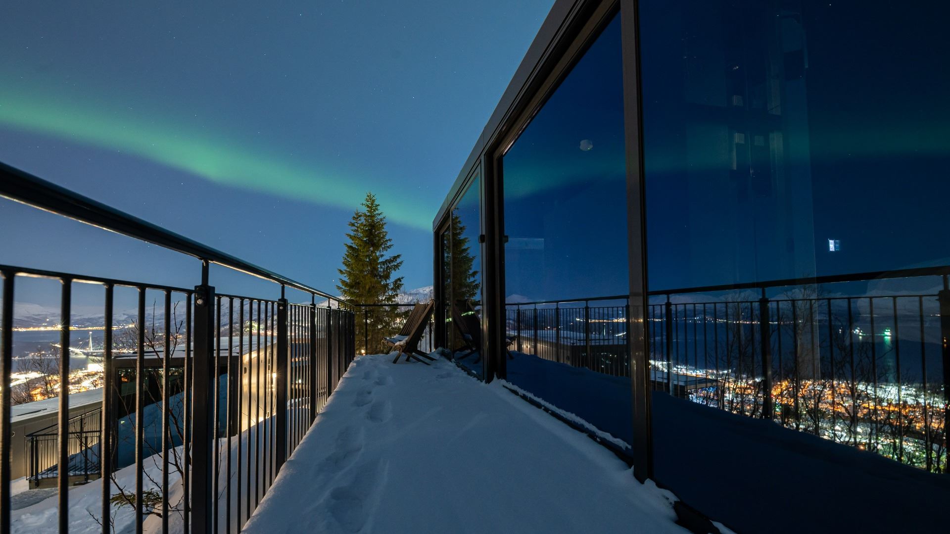 Die luxuriösen Hütten haben zwei verschiedene Größen und sind als kleine, freistehende Apartments auf einer Ebene mit Glaswänden an drei von vier Seiten konzipiert. Die hochwertigen Hütten vermitteln das Gefühl, in einem Luxushotel zu wohnen, mit qualitativ hochwertigen Betten und einem Wand-zu-Wand-Dachfenster im Schlafzimmer. Alle Hütten bieten fantastische Aussichten auf das Meer, die Berge und die Stadt Narvik. Die Narvik Hütte wird als Basis für Gemeinschaft und Genuss dienen, mit einem Loungebereich, einem Besprechungsraum und einfacher Verpflegung für die Gäste des Camps.