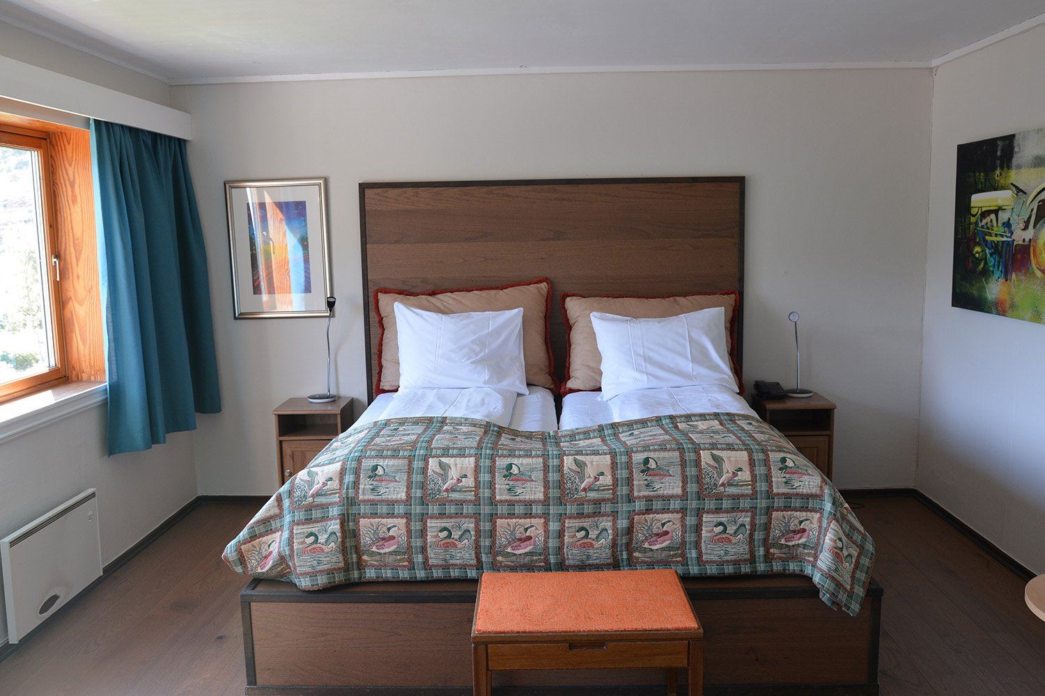 Vatnahalsen has 40 rooms, including 7 single rooms, with a total of 75 beds in the main building. The rooms are bright and cozy with views of the surrounding nature. Most double rooms can accommodate extra beds and from June–September we also offer extra rooms in the annex, which is approximately 150 metres from the hotel.