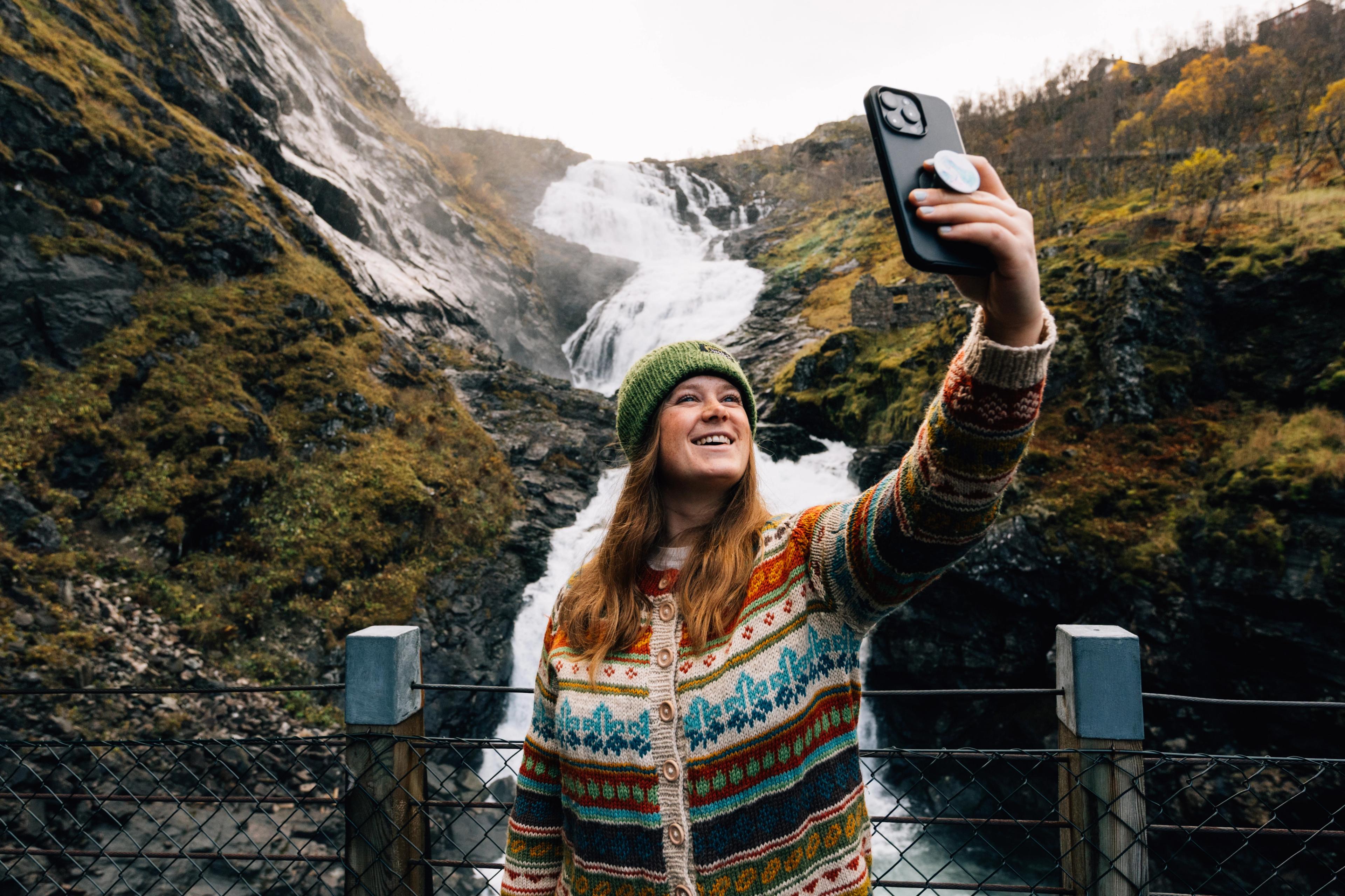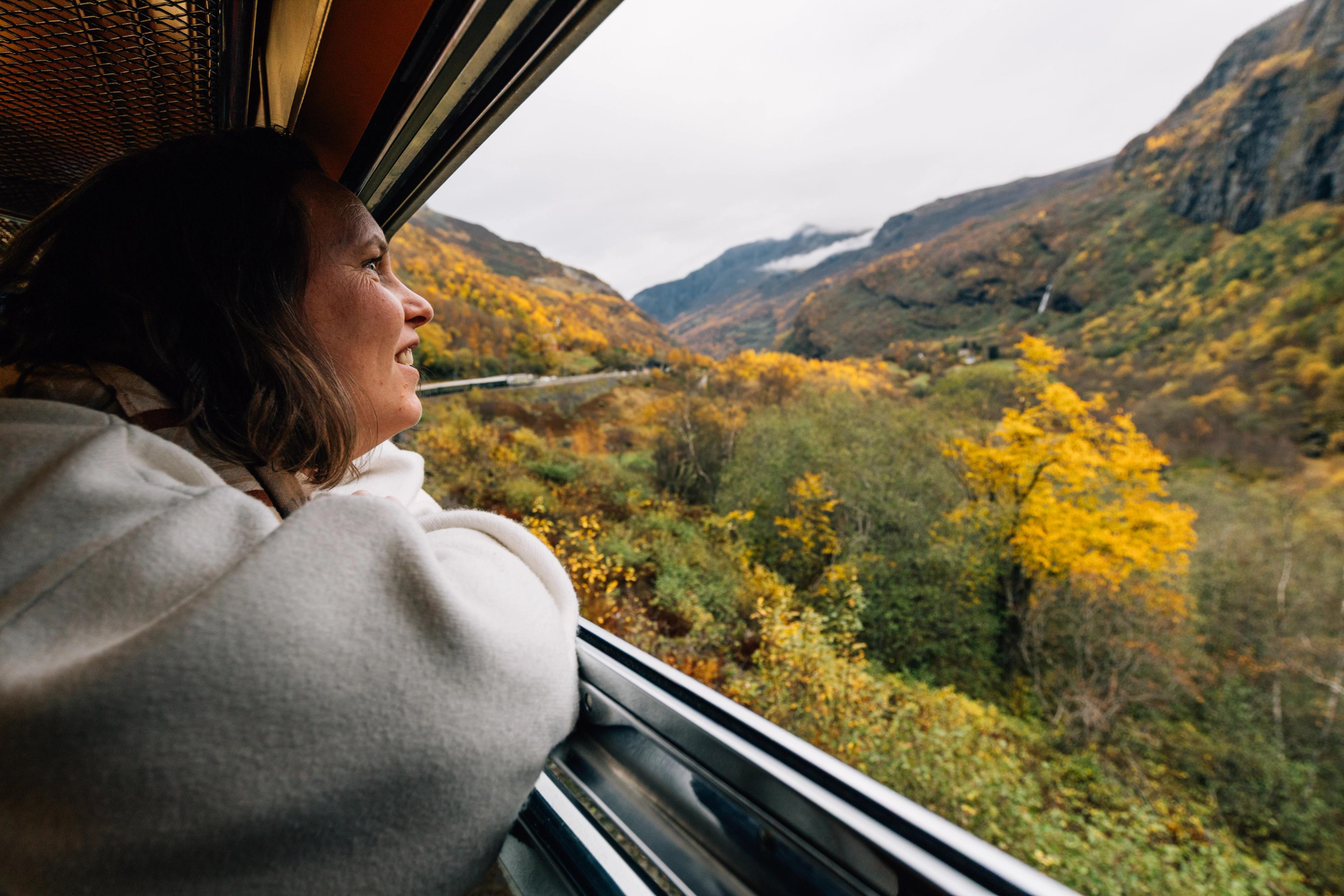 The train makes a five-minute photo stop at Kjosfossen, where you can step out onto the platform.