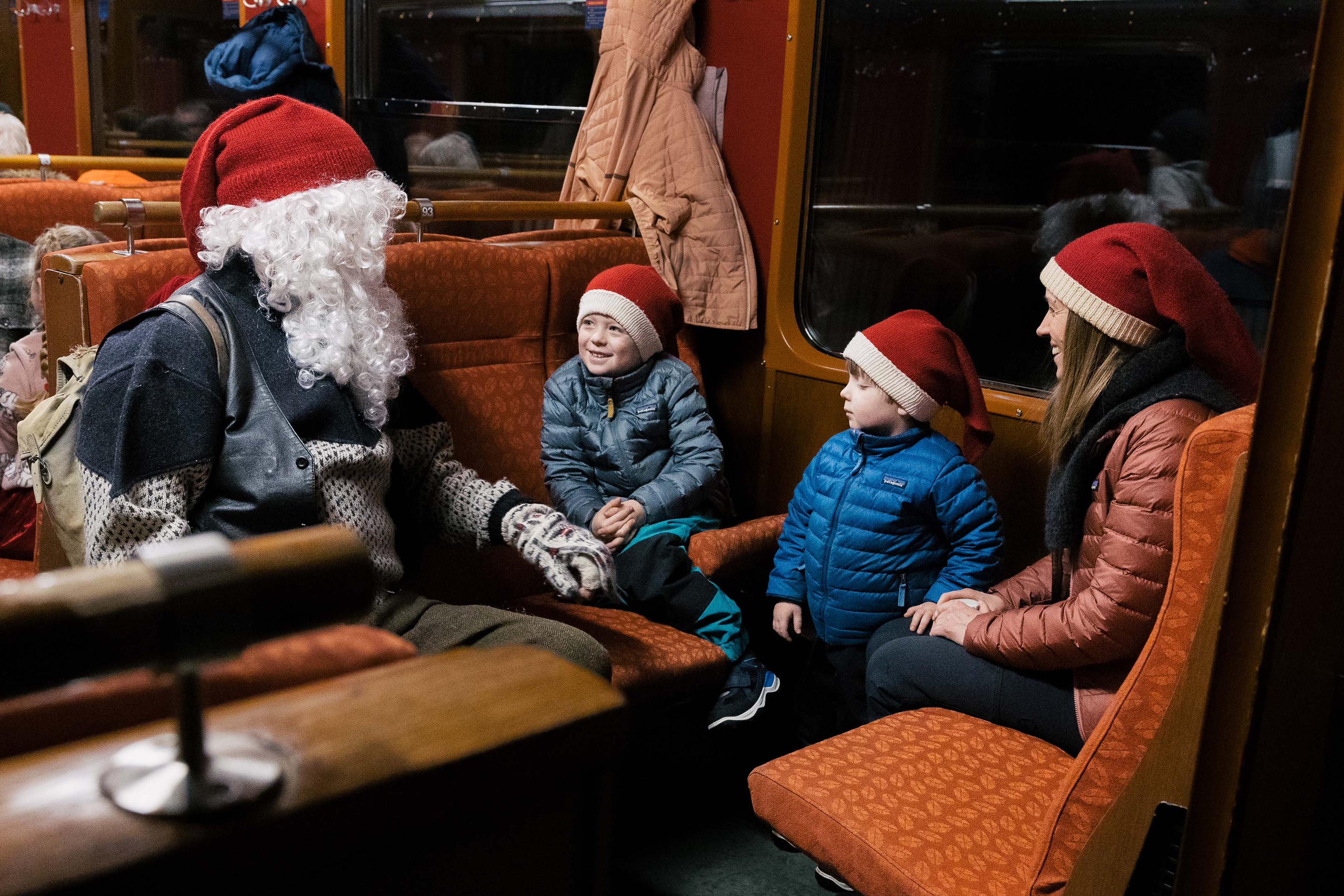 Cuando la nieve cubre las montañas y la luz del invierno brilla en los fiordos, te espera un viaje muy especial. En el Tren de Navidad de Flåm, Papá Noel viaja con vosotros, repartiendo sonrisas y regalitos a los más pequeños, y creando un ambiente cálido y navideño en el vagón.