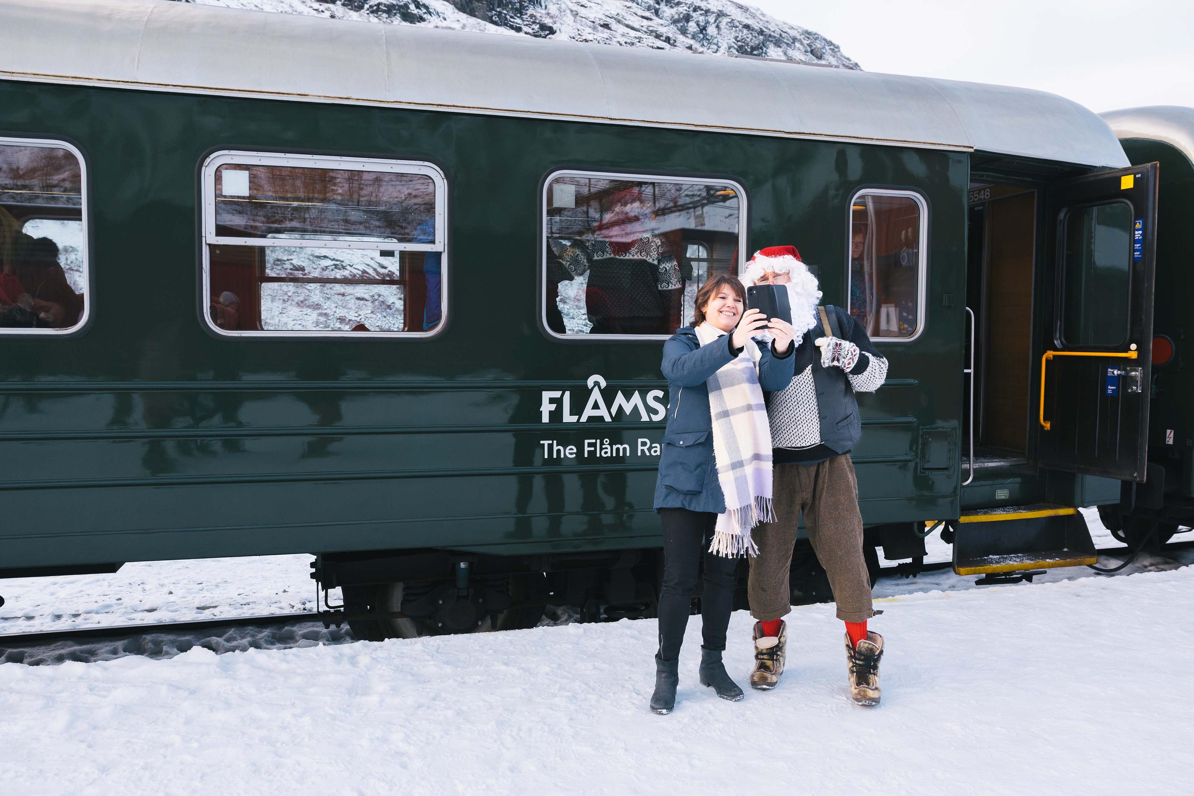 Embarquez pour un voyage magique de Noël à bord du train de Flåm – avec le Père Noël à bord ! Une expérience inoubliable pour toute la famille, remplie de nature, de sourires et de surprises.