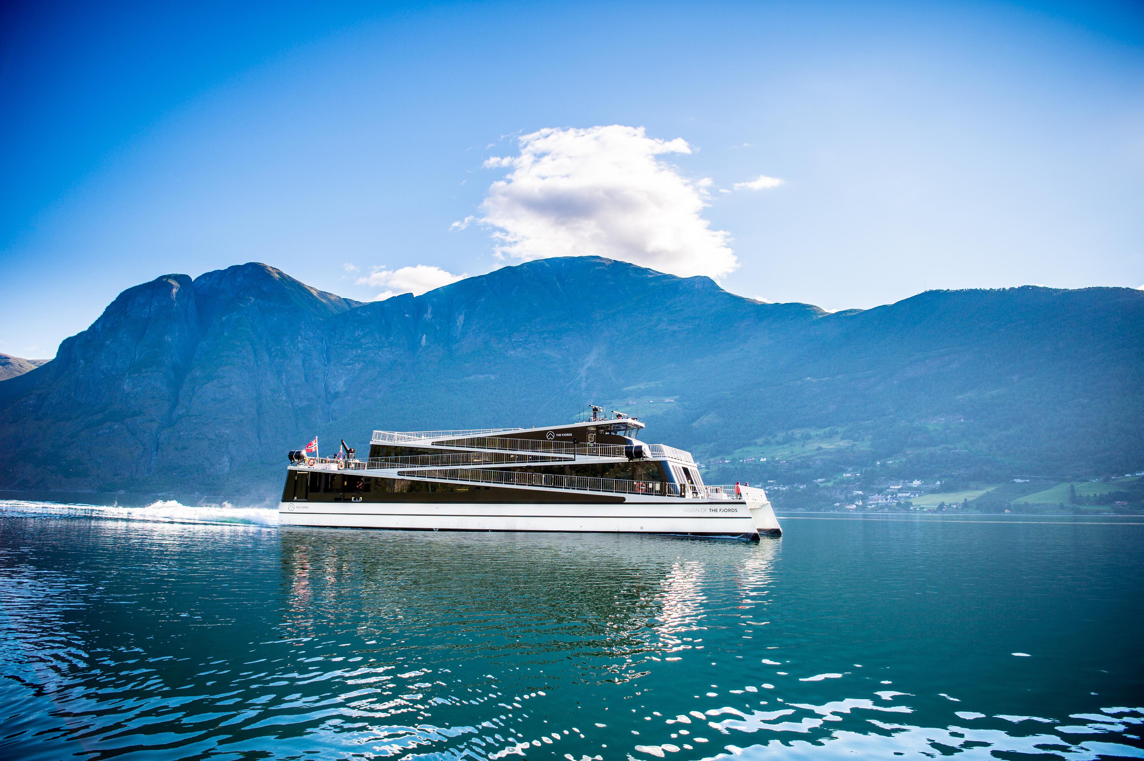 Si vous souhaitez découvrir le fjord de Nærøy inscrit au patrimoine mondial de l'UNESCO avec élégance, il n'y a pas de meilleure façon que de monter à bord d'une croisière entre Flåm et Gudvangen. Le navire tout électrique Future of The Fjords glisse silencieusement à travers le paysage impressionnant. Profitez du panorama à travers les fenêtres panoramiques depuis l'un des salons intérieurs ou sortez sur le pont pour ressentir la brise.