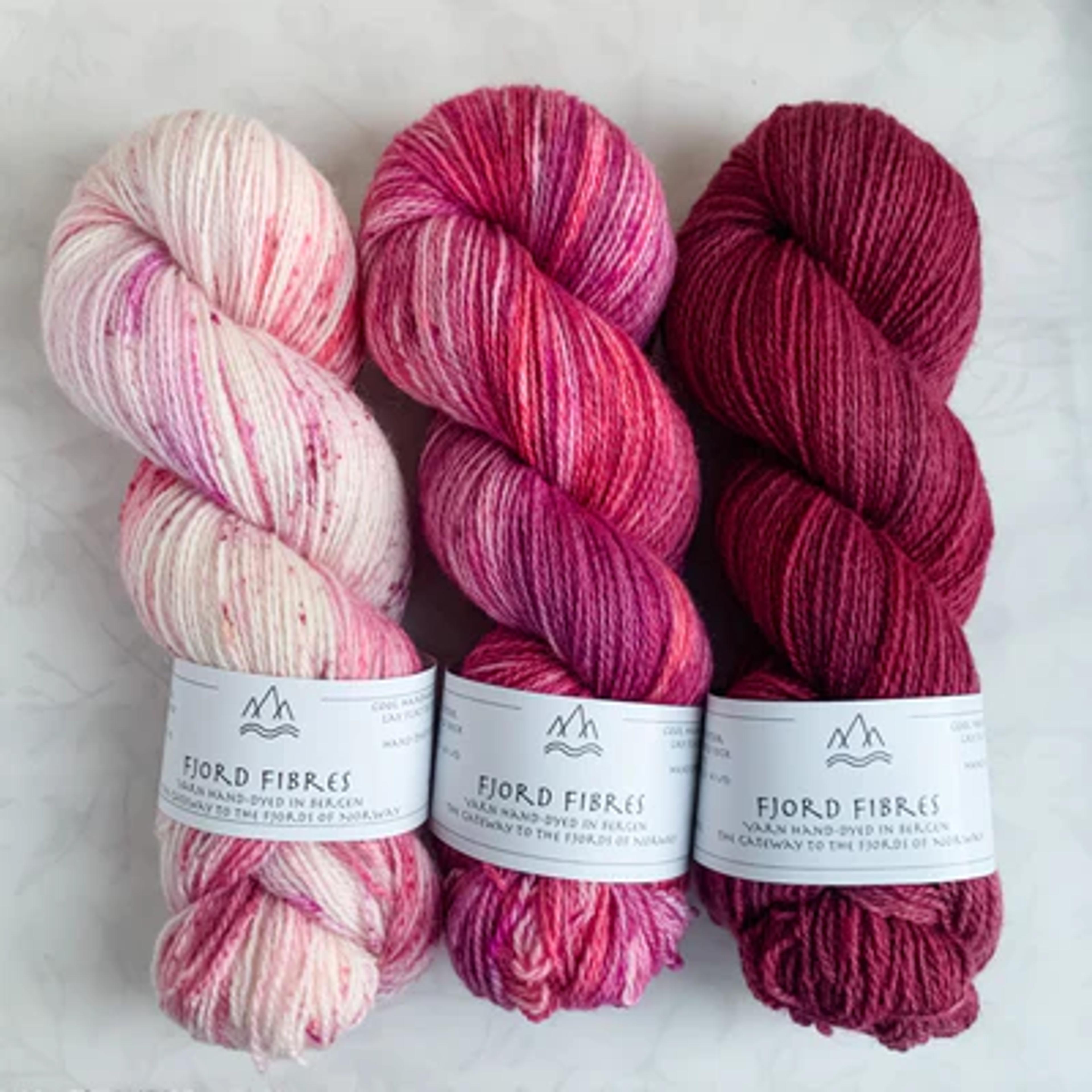 Fjord Fibres drives av Gilly i Bergen. Ho tilbyr hesper av handfarga garn i aldeles nydelege fargar! Ulla kjem frå lykkelege sauer som har levd på gårder med høg dyrevelferd.