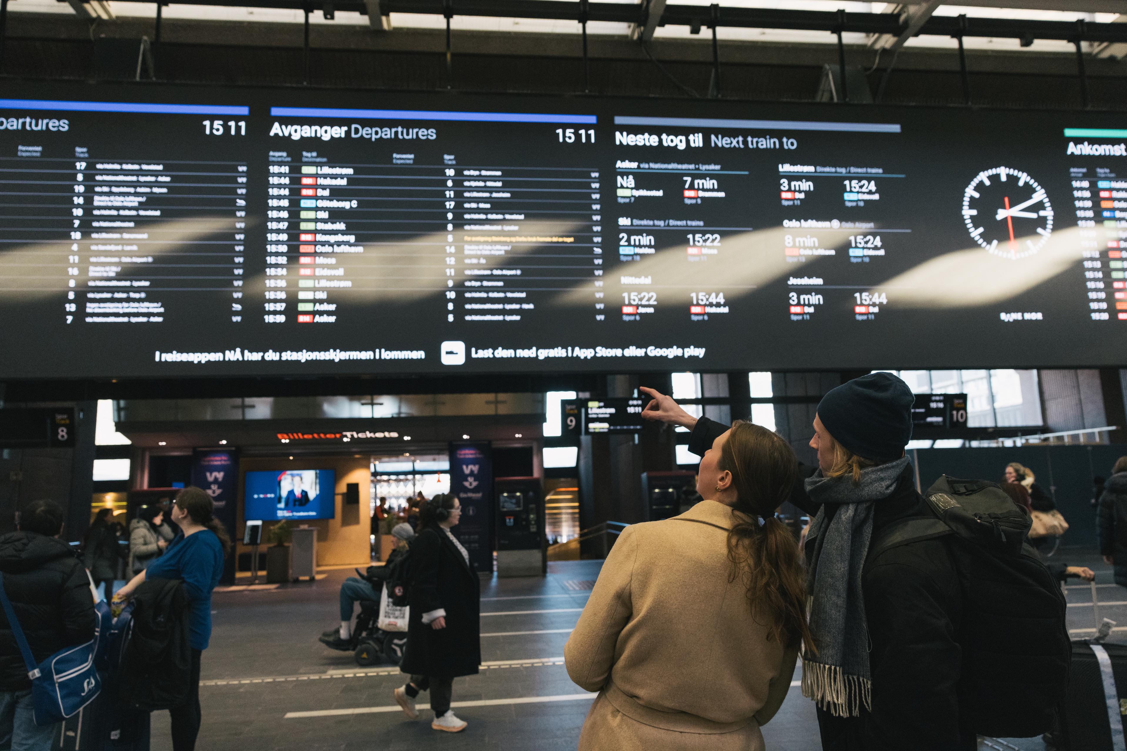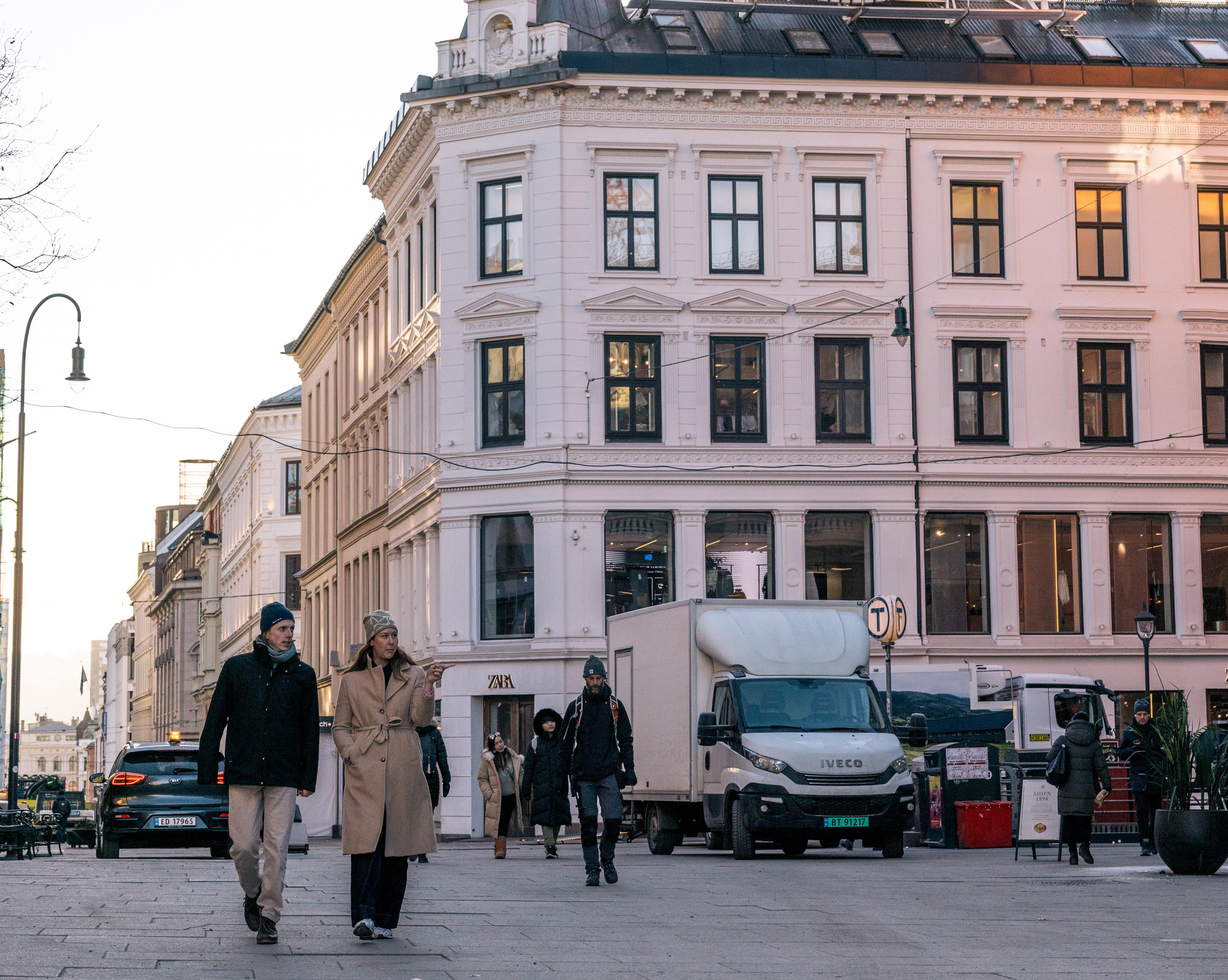 Når du trer ut av Oslo sentralstasjon, strekker Oslofjorden seg ut mot venstre, og rett foran deg ser du Karl Johans gate – byens livlige hovedgate. Denne pulserende boulevarden går fra stasjonen og helt opp til Slottet, omgitt av butikker, kafeer og noen av Oslos mest kjente bygninger.