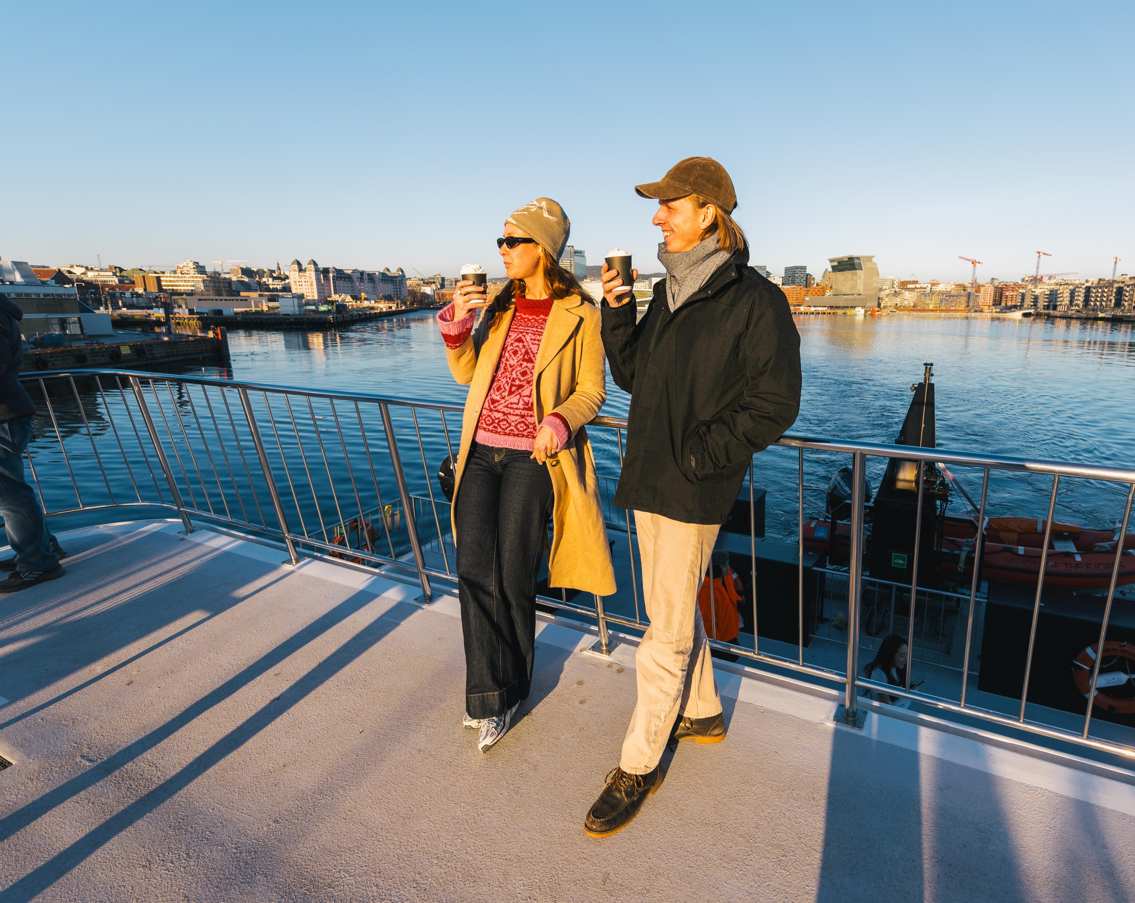 Tid for en pause! Nå har du sett Oslo fra gatene, parkene og kanskje til og med fra et tak. Men hvis du ennå ikke har kommet deg ut på sjøen, gjenstår én helt essensiell opplevelse: Fjord Cruise. Ta turen ned til Langkaia, rett ved Operaen, og gå om bord. Bestill noe godt å drikke – varmt eller kaldt, alt etter årstiden – og slapp av. Enten du velger den friske sjøbrisen ute på dekk eller en lun plass innendørs, venter en vakker og minnerik tur på deg.