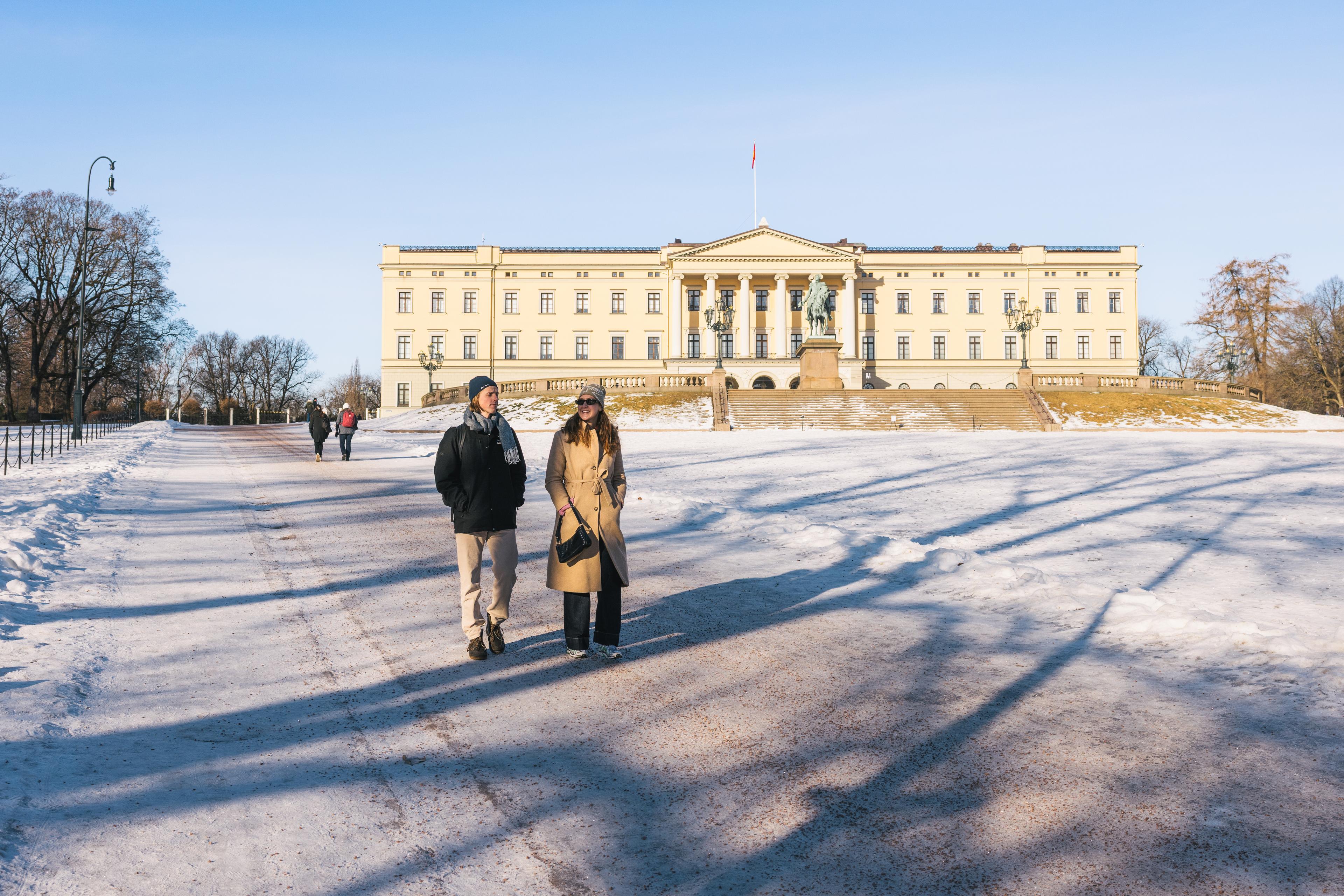 Gjør deg klar for finalen av Karl Johan-turen din: Slottet. Dette er et av de mest billedskjønne stedene i byen – i begge retninger. Ta noen bilder av selve Slottet, og snu deg deretter for å nyte den fantastiske utsikten nedover Karl Johans gate.