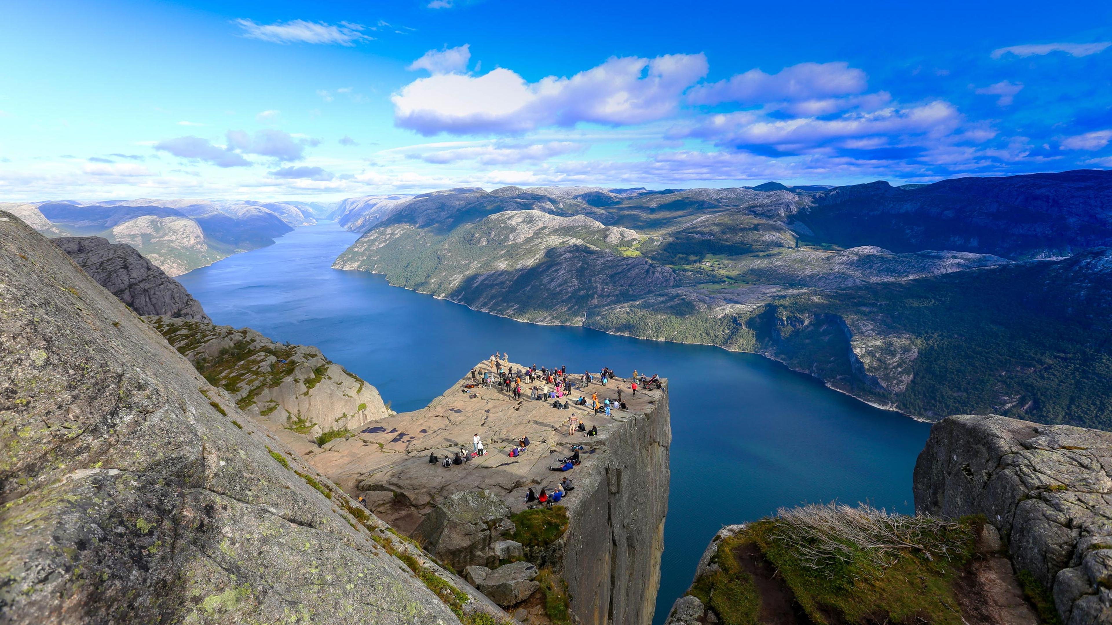 604 meter opp fra den mektige Lysefjorden rager fjellplatået Preikestolen. Dette naturlige underverket kan nytes både fra vannet, på et fjordcruise, eller du kan ta turen opp til fots.