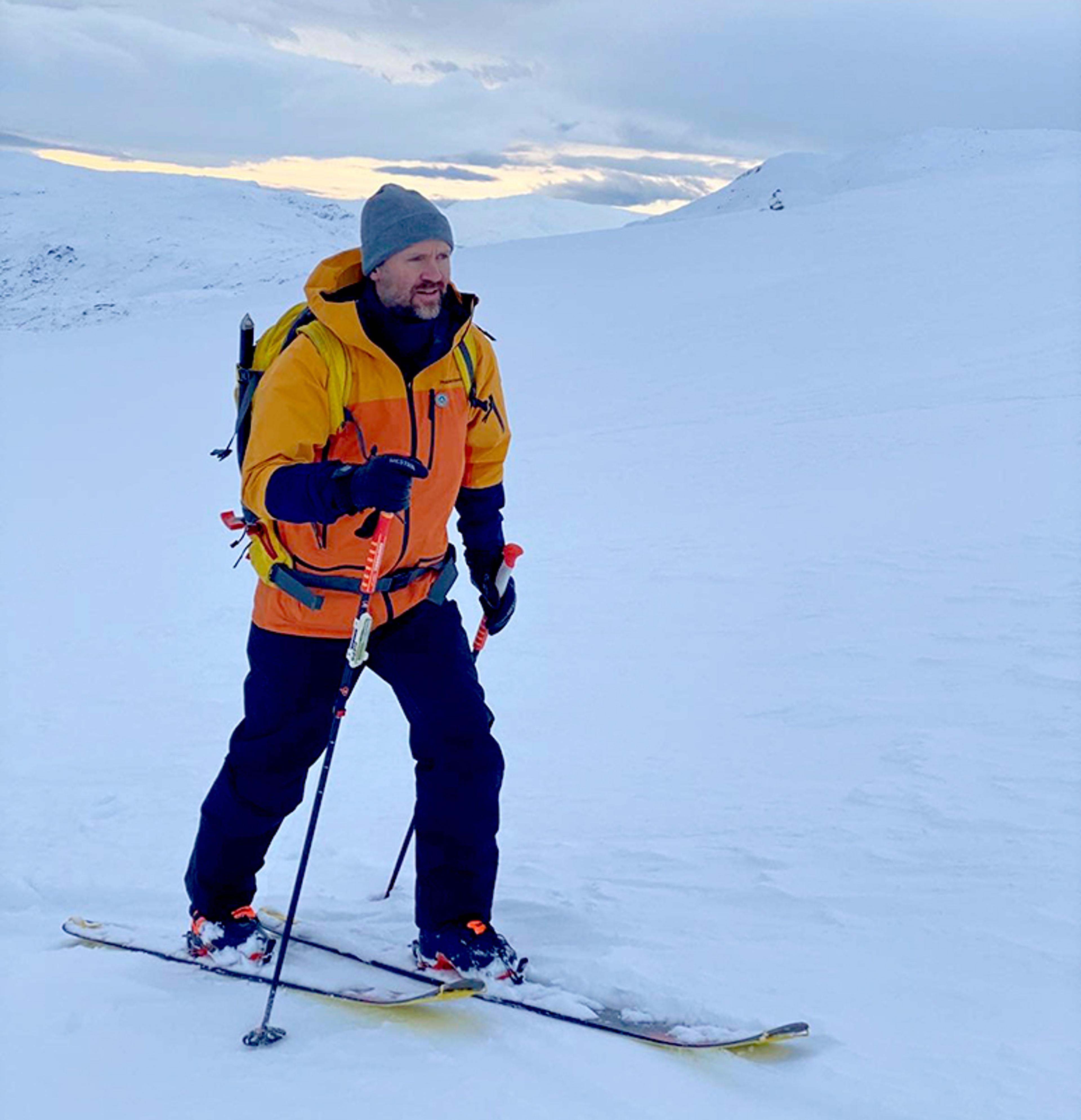 Det var først i militæret på Setermoen i Bardufoss at Stein ble introdusert for fjellski og klatring. Og siden har han alltid vært på jakt etter brattheng og urørt snø. Etter geologiutdanning og 12 år som fagansvarlig for redning i Aak Safety, jobber han nå som redningsteknisk rådgiver i Norsk Luftambulanse.