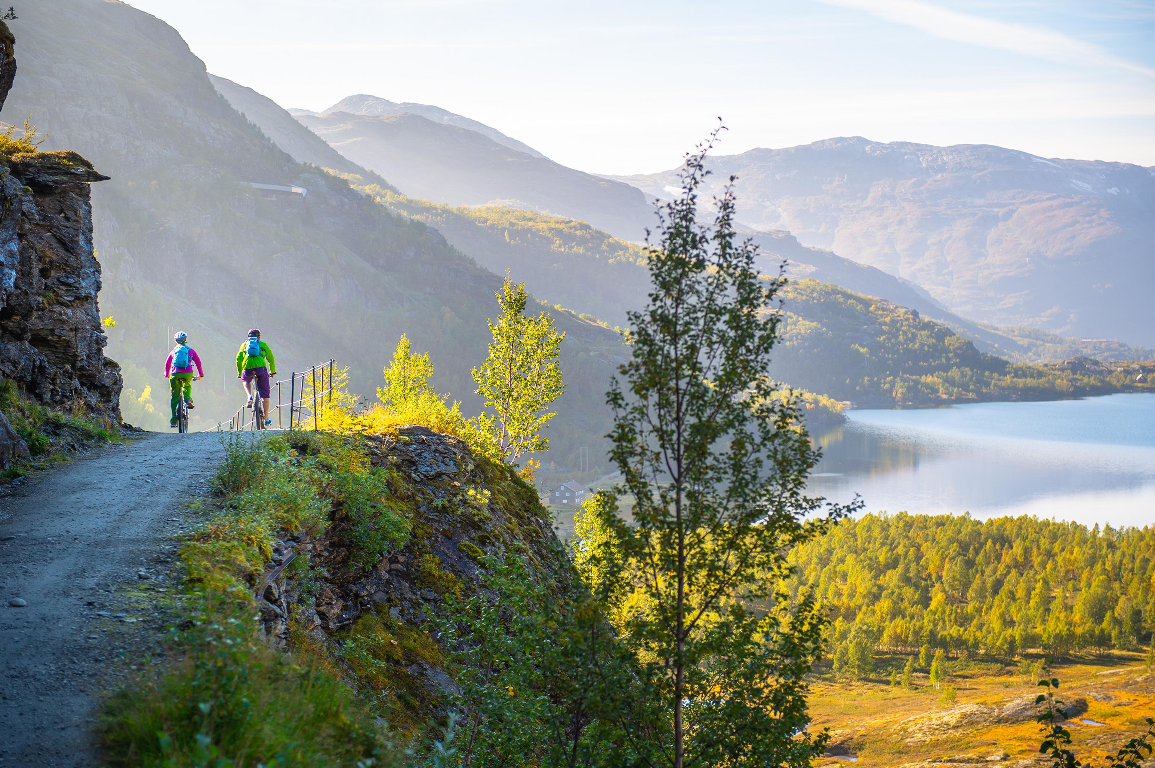 I likhet med fjellturer, er høsten hovedsesong for sykkelturer på Rallarvegen. På sommeren kan det fortsatt ligge snøfonner man må bære sykkelen over. Hva kan vel være bedre enn en dagstur på sykkel fra høyfjellet på Finse til fjorden i Flåm, der du blir møtt av en after-bike med lokalt øl og en god middag på Fretheim Hotel? Husk bare å ha med godt med klær, været er ustabilt i høyden.