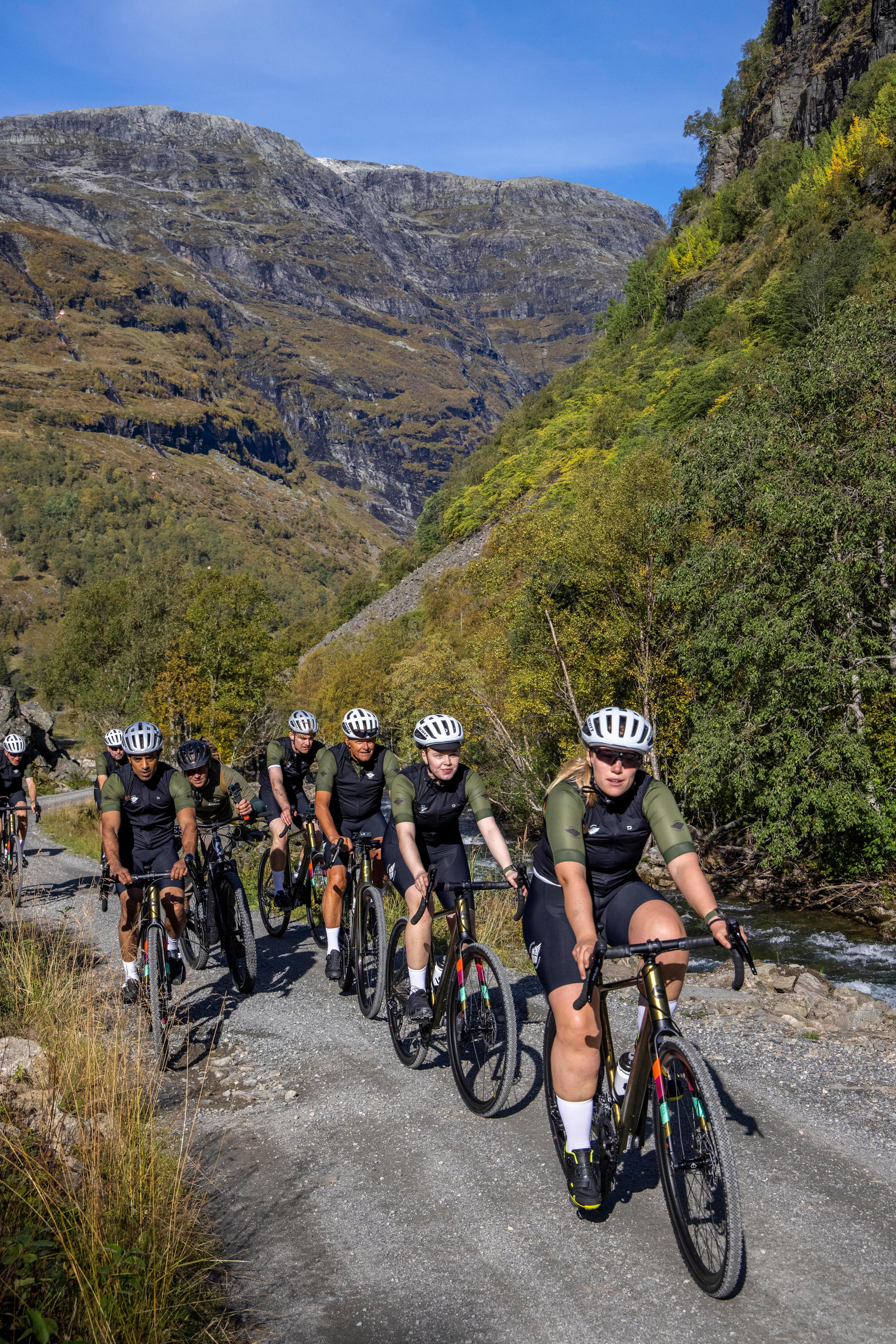 Deltakerne møter Obersten midt i det dramatiske landskapet i Flåmsdalen – et sted som nesten føles som tatt ut av et eventyr, omgitt av bratte fjellsider, brusende elver og grønne dalsider. Der står en rekke terrengsykler klare, sammen med en tydelig fornøyd Dag Otto Lauritzen. Med et lurt smil leverer han beskjeden: