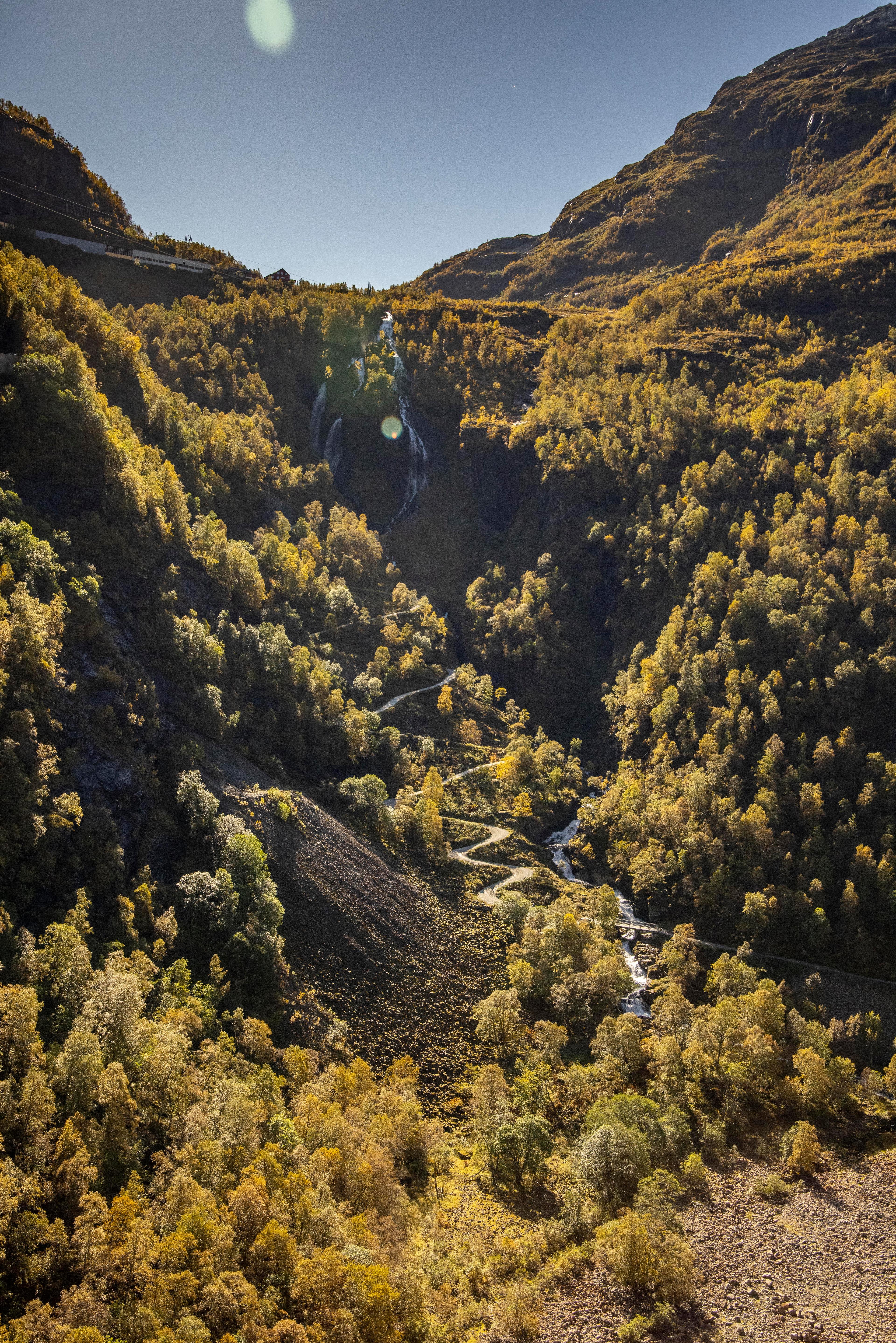Denne delen av Flåmsdalen er kjent for å være eksepsjonelt vakker - og den kan faktisk oppleves både på sykkel, til fots og fra lufta! Et lite steinkast fra Vatnahalsen finner du nemlig Flåm Zipline.