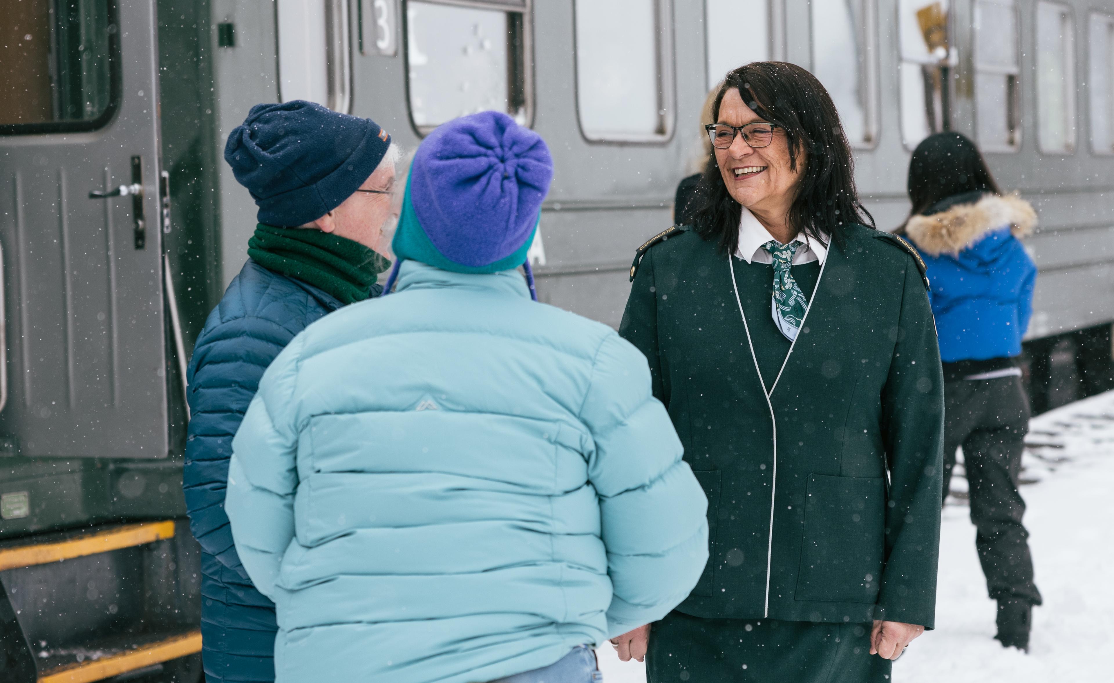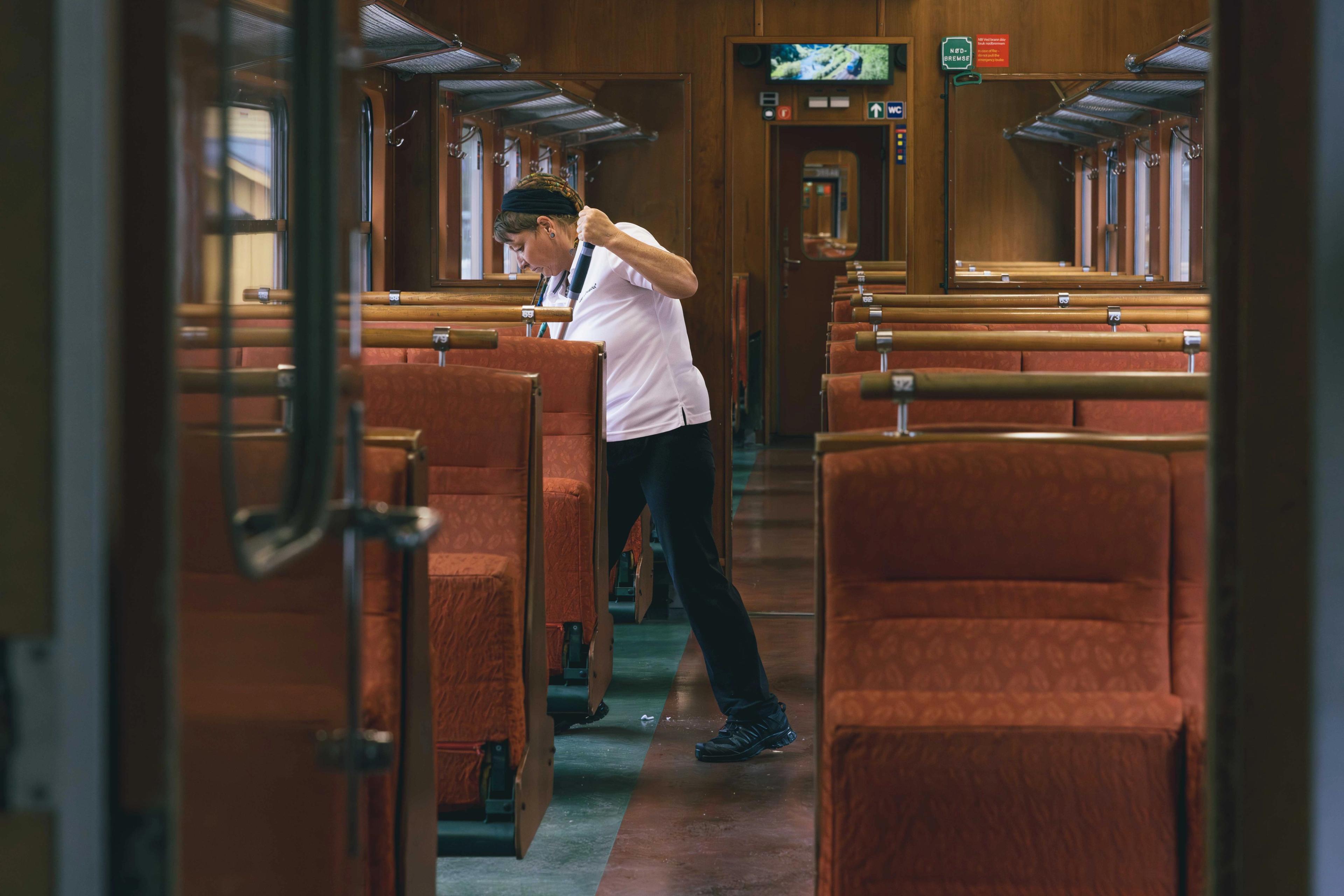 Siw har jobbet totalt 37,5 år i jernbanen, hvorav 26 av dem på Flåmsbana. Som konduktør består jobben hennes av å ønske passasjerene velkommen, sjekke billetter, sørge for at sikkerhetsrutiner følges, hjelpe til med bagasje og barnevogner – og ikke minst: holde tidsskjemaet.