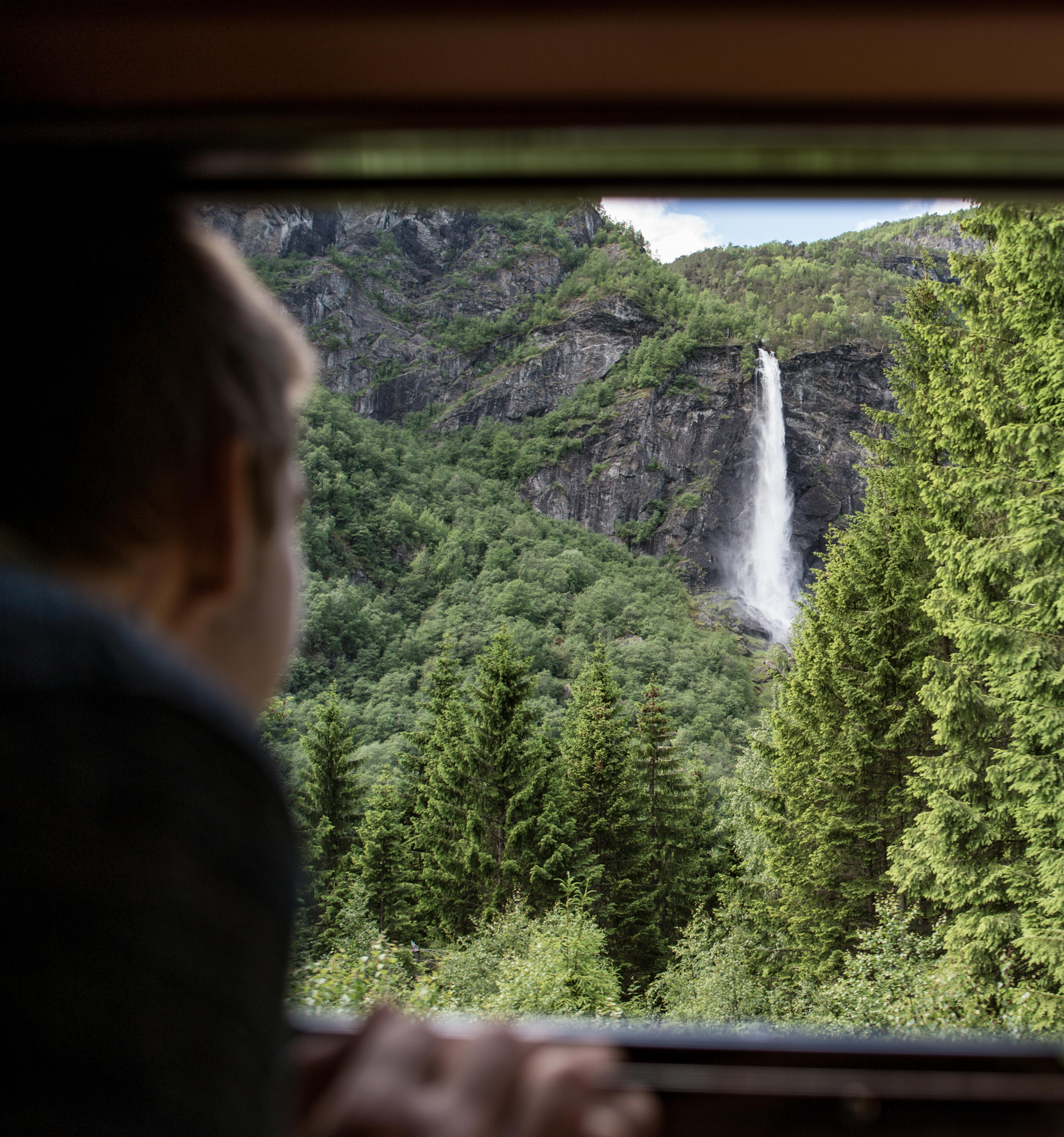 Den 20 km lange togstrekningen mellom Flåm og Myrdal byr på utsikt over spektakulære daler og vakre fossefall.