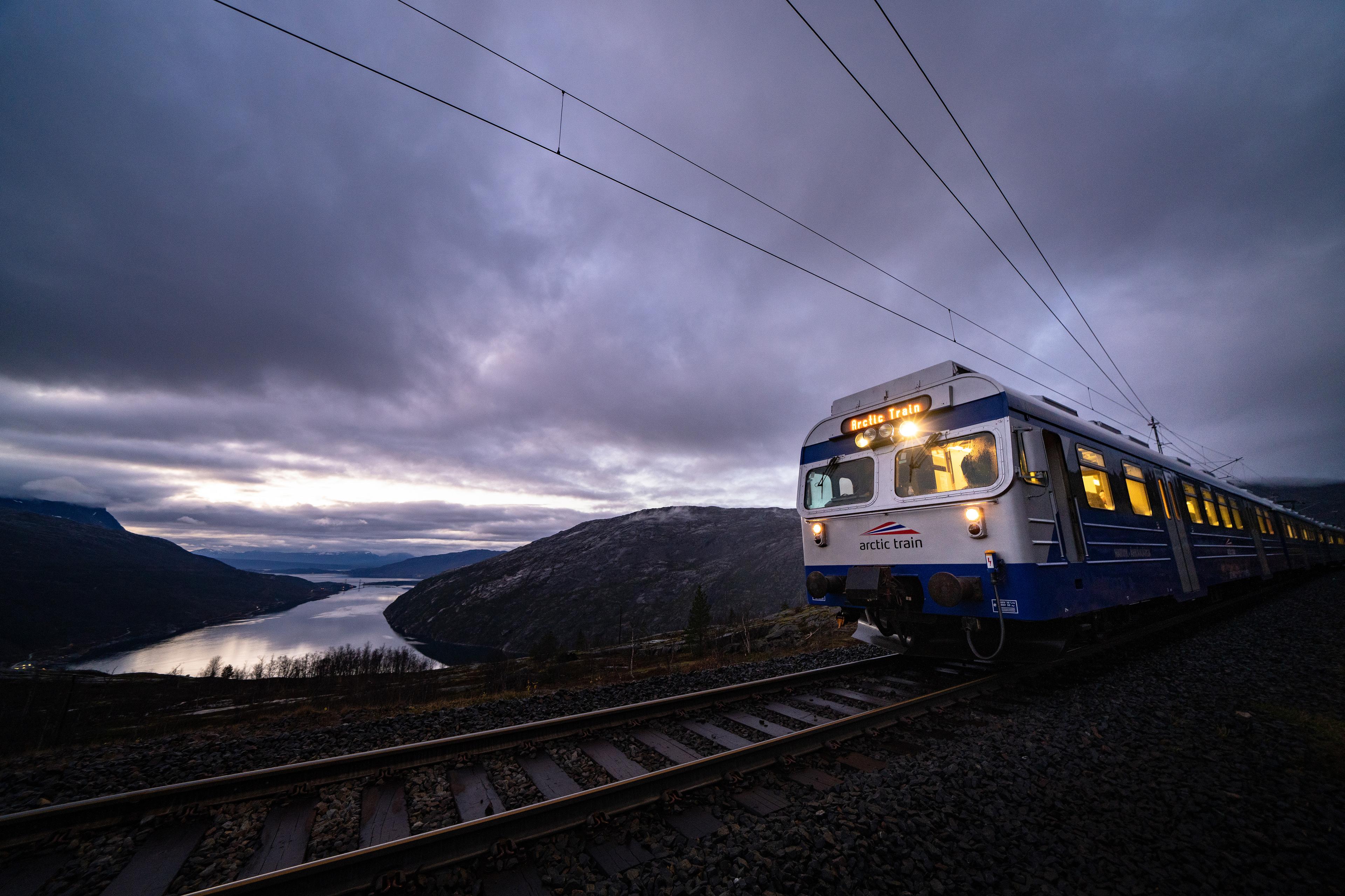 På togstrekningen fra Narvik til Abisko på svensk side av grensen, går Arctic Train gjennom et unikt, vakkert og skiftende landskap - fra fjorder til høyfjell.