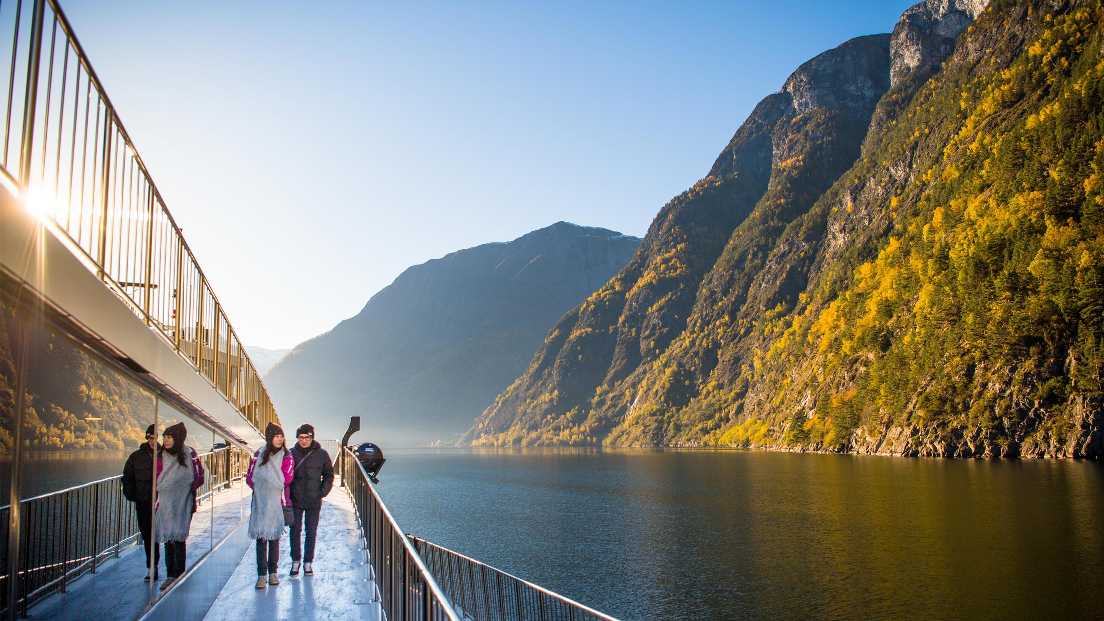Etter to aktive dager passer det fint med en rolig formiddag på fjorden. Gå om bord på Fjord Cruise Nærøyfjord i Flåm og la den elektriske motoren ta dere med gjennom Aurlandsfjorden og Nærøyfjorden. Sistnevnte står på UNESCO sin verdensarvliste på grunn av den spektakulære urørte naturen. Her seiler dere lydløst forbi små veiløse grender og majestetiske fossefall. Framme i Gudvangen tar dere skyttelbuss tilbake til Flåm. De moderne båtene har gangveier og dekk man kan bevege seg på ute og to salonger med panoramavinduer inne, så god utsikt er sikret uansett hvor du befinner deg.