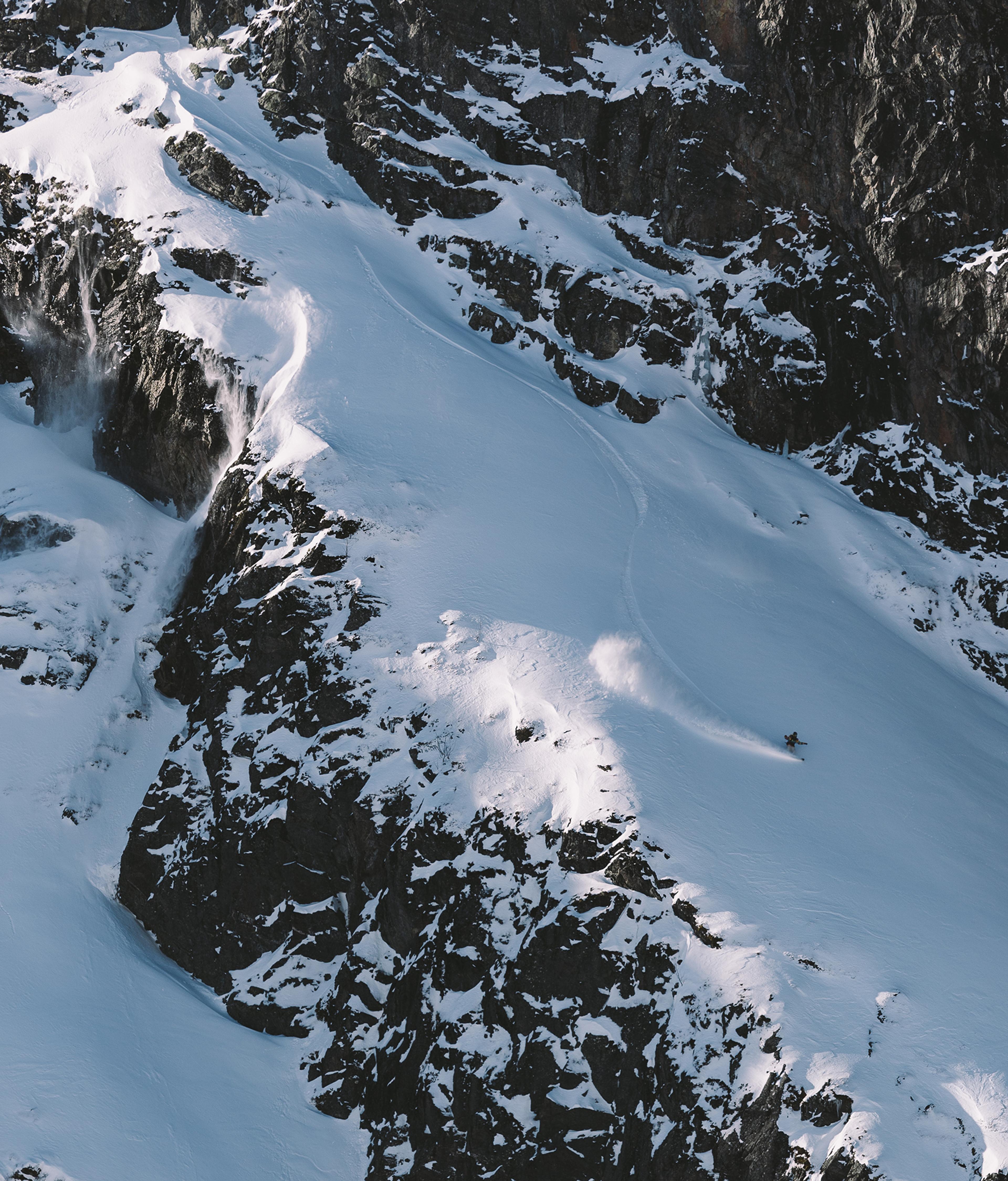 Nå er det bare en håndfull andre gjester her, og hele området er stille og rolig, bortsett fra den sporadiske togfløytingen. Lag din egen sti. Finn din egen vei. Begge deler er mottoer for ungdommen. Her på Vatnahalsen er det nøyaktig det vi har til hensikt å gjøre. Vi bruker splitboard rett fra hotellet, og mens vi begynner vår ferd opp i pudderparadiset, blir toppene og linjene tydeligere og avslører sitt potensiale for adrenalin og herlighet.
