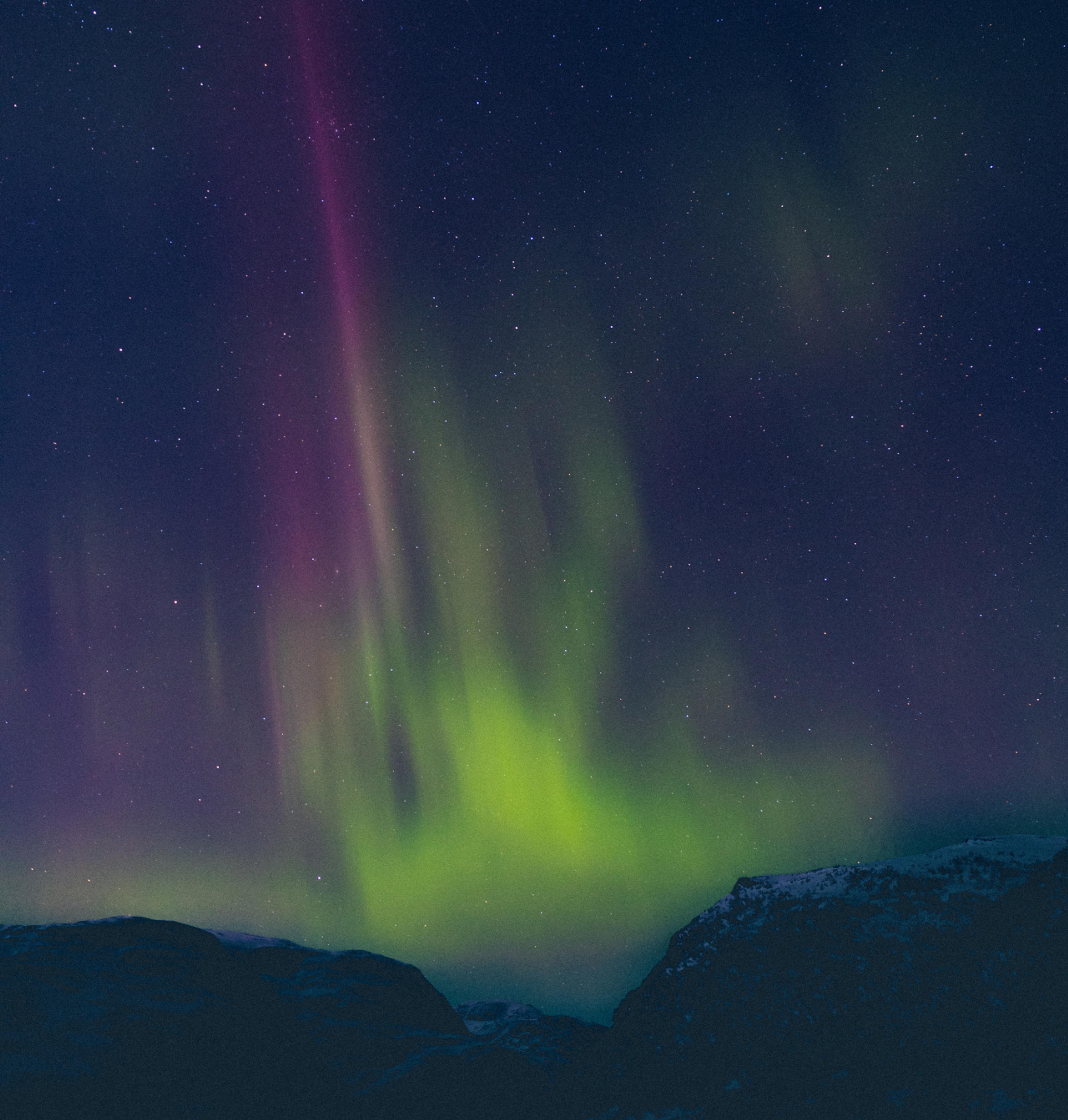 Når natten faller på, begynner nordlyset å avsløre seg for det blotte øye. Bålet varmer både kropp og sjel, og tilfredsheten med dagens prestasjoner avler dypere vennskap innenfor gjengen av tøffe snøbrettkjørere.