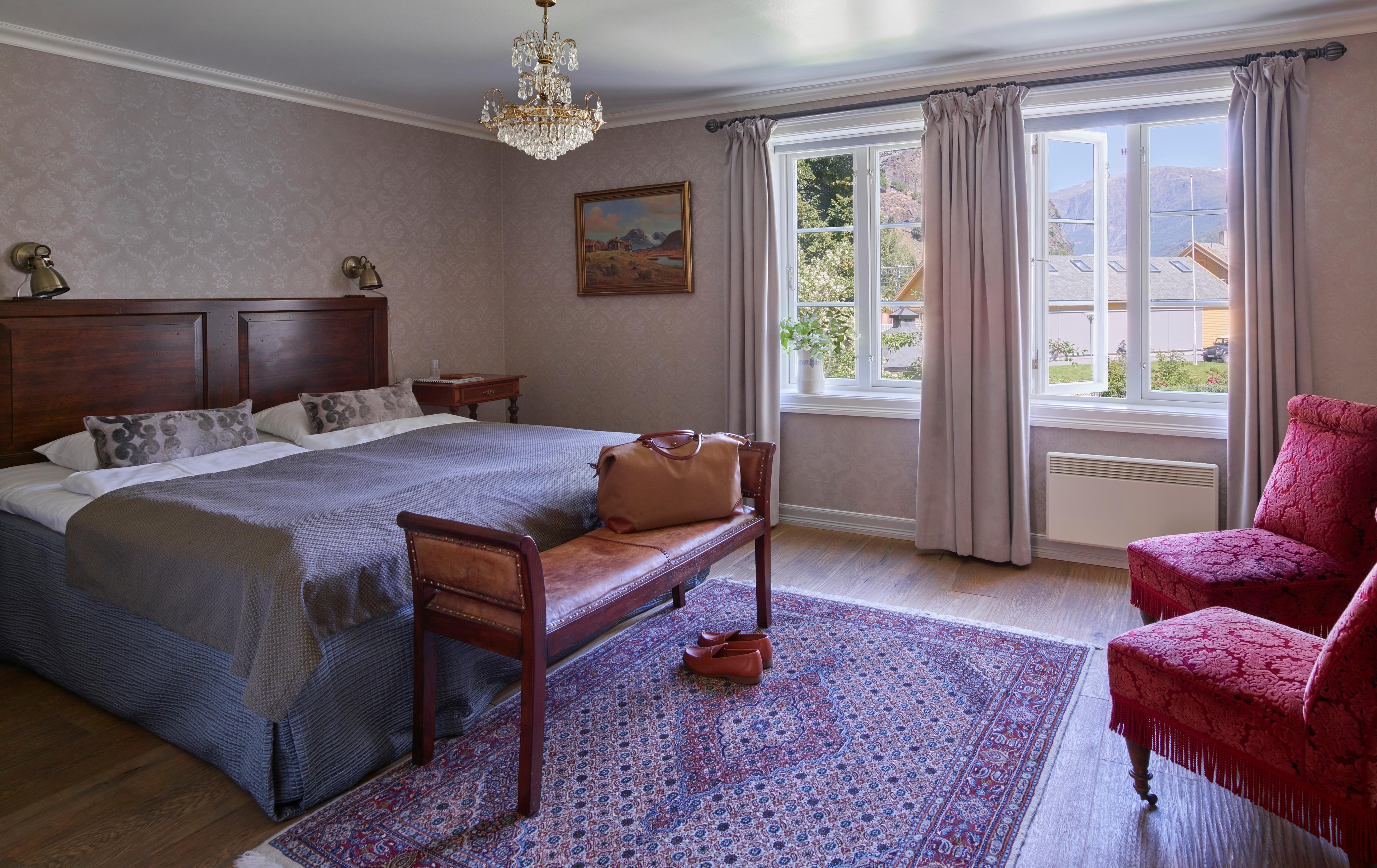 Bo på historiske Fretheim Hotel, nyt bobler på rommet, middag med smaker fra fjellet og en stille morgen med utsikt mot fjorden.
